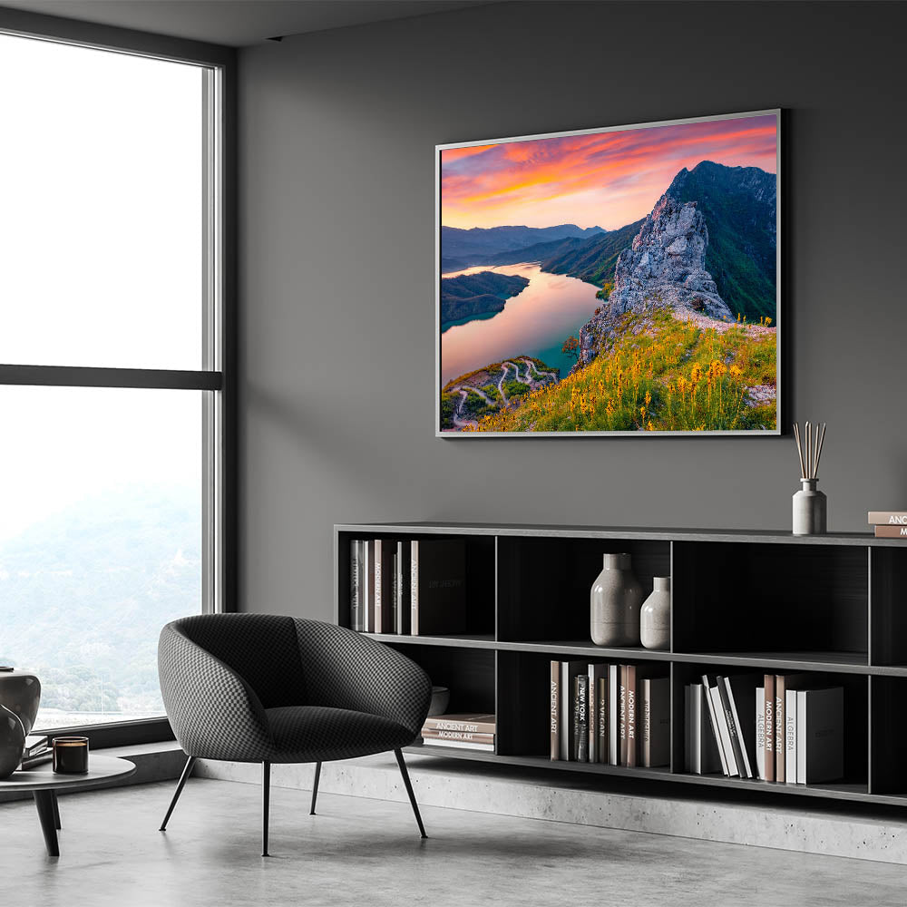 Witness the breathtaking beauty of Albania’s natural landscape with this stunning wall art, featuring a vibrant sunset over a winding river. This high-quality Albania canvas art captures the majestic mountains and colorful skies, creating a mesmerizing view that’s perfect for adding a touch of adventure and serenity to any room. Ideal for those who love nature, travel, and scenic vistas, this artwork brings the peaceful charm of Albania's wilderness into your home.