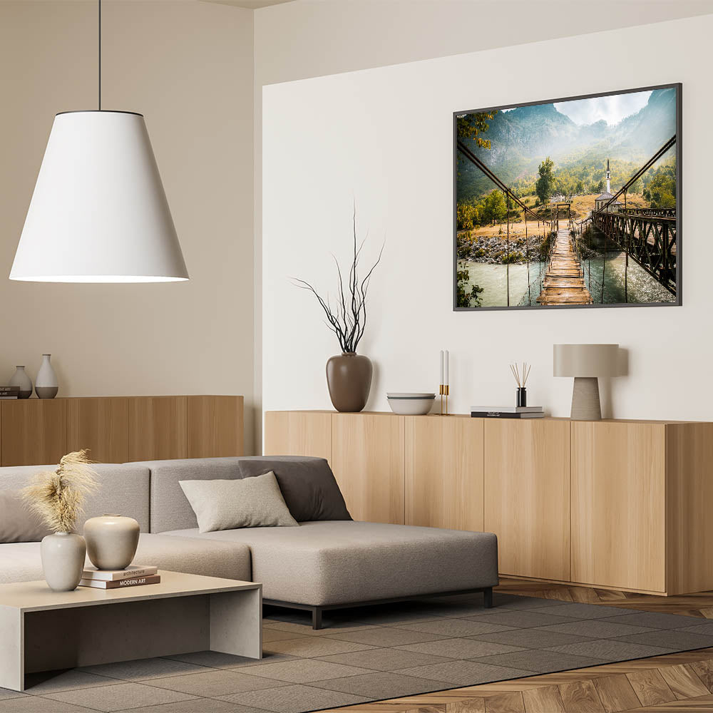 - Available in multiple formats: stretched canvas, framed canvas, acrylic glass, framed acrylic glass, framed print, rolled canvas, and rolled print.