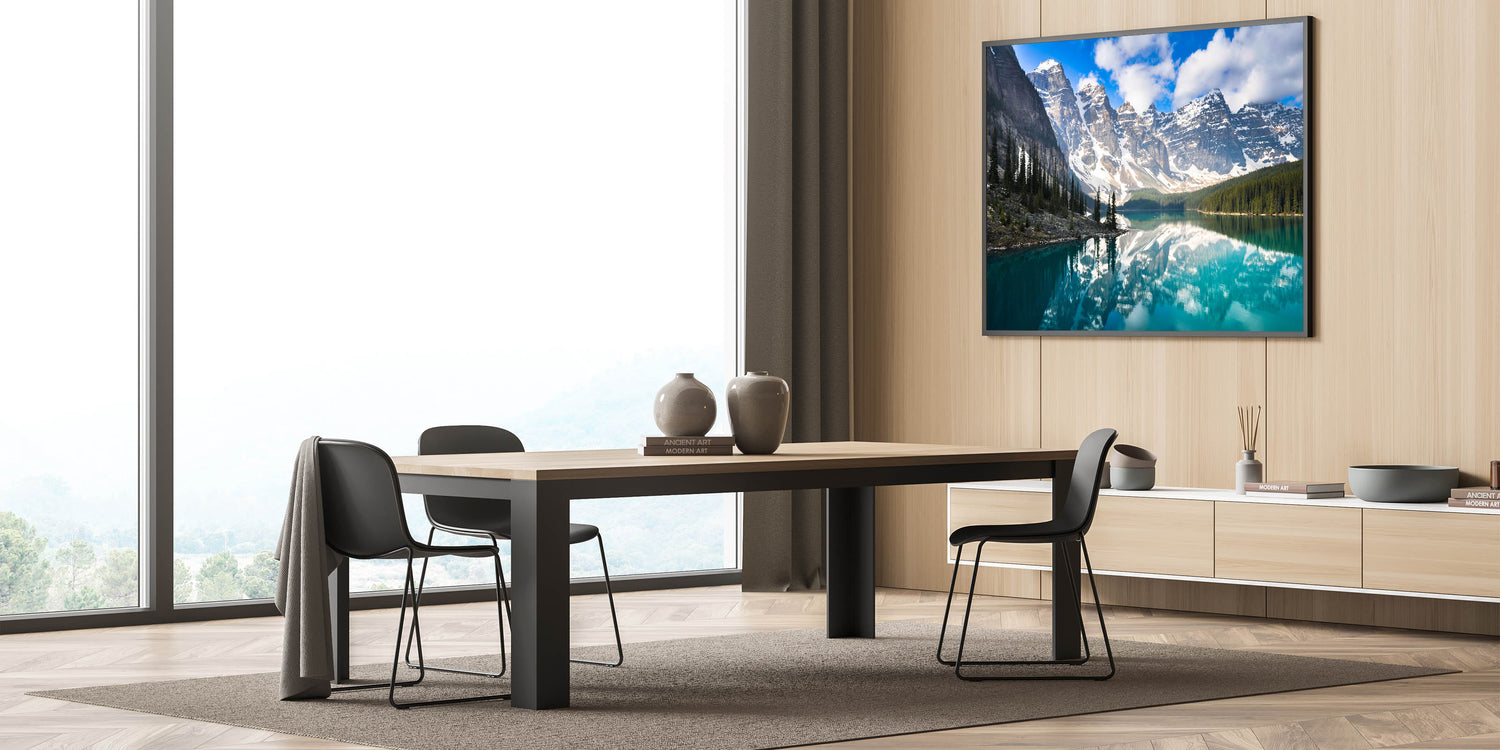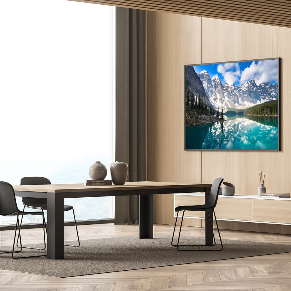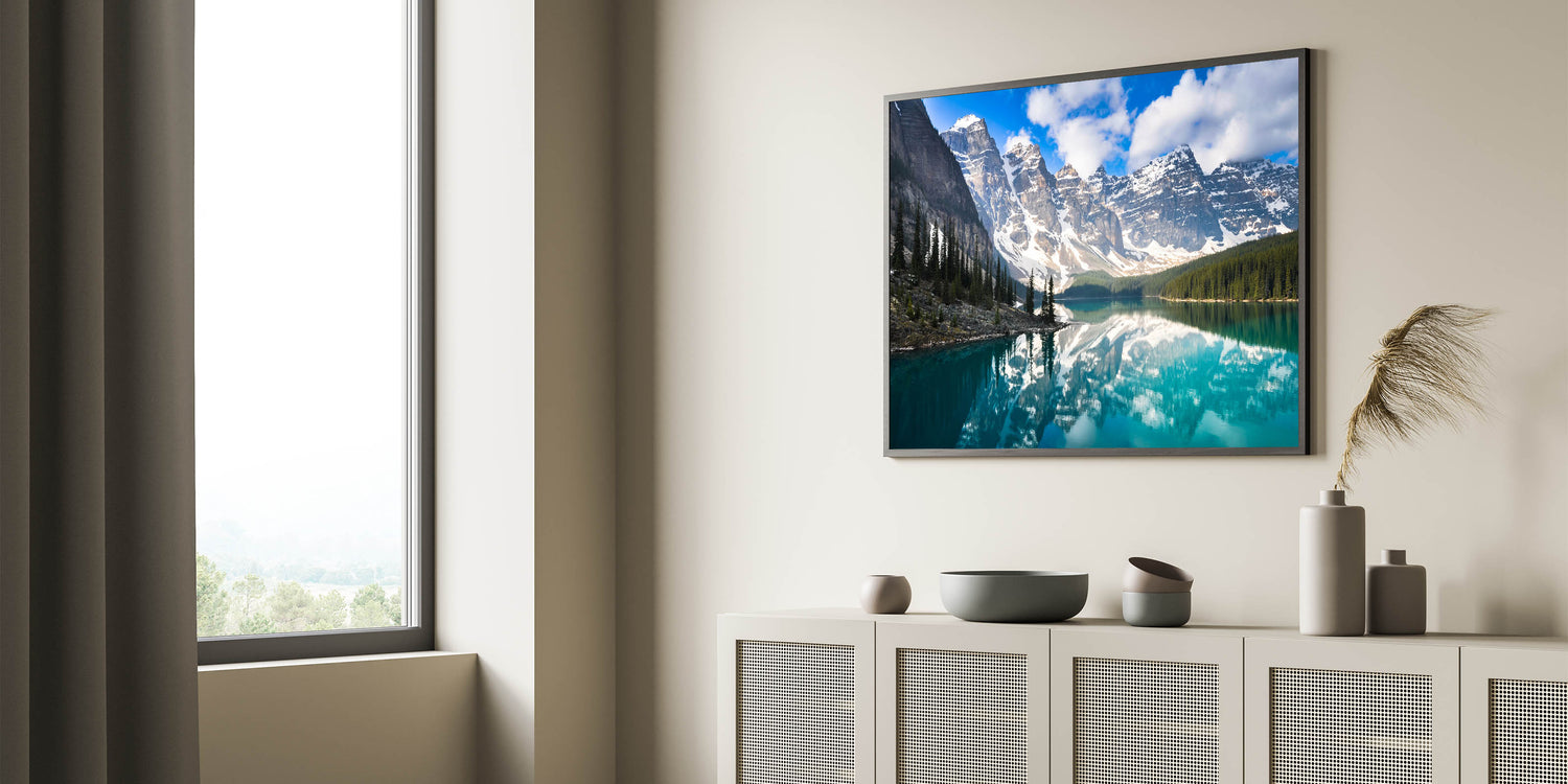 Elevate your decor with this serene piece that captures Alberta's natural splendor. Perfect for art lovers and nature enthusiasts alike, this wall art invites the tranquility of Moraine Lake into your home.