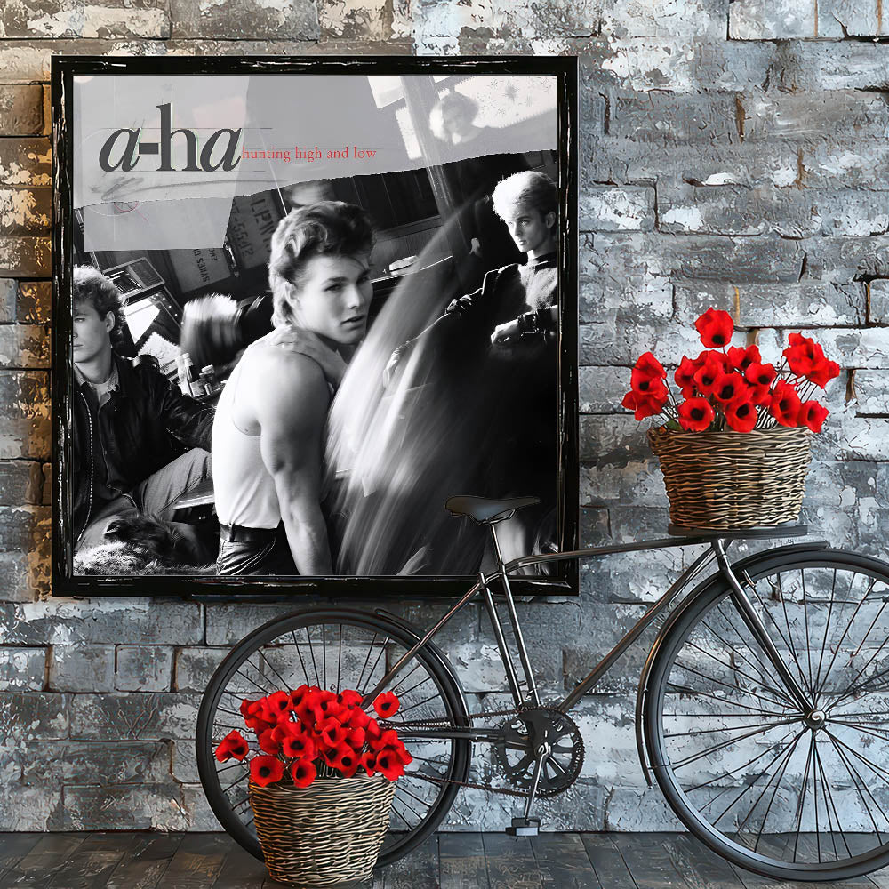 Capture the essence of the 80s with this Retro Wall Art featuring A-ha's iconic Hunting High and Low album cover. Perfect for fans of vintage decor and nostalgic art prints, this piece embodies the classic retro style with its black and white tones and moody atmosphere.