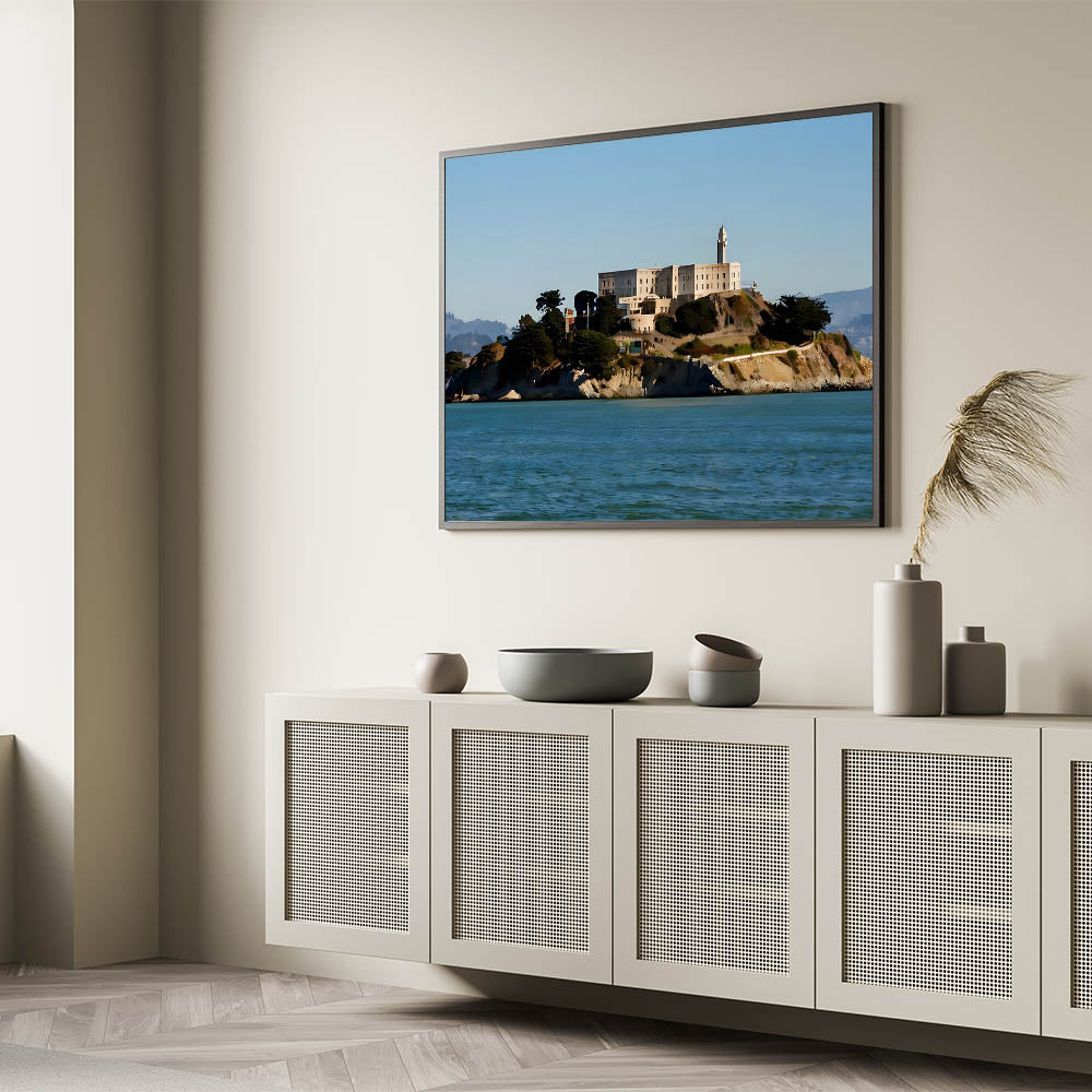 Capture the essence of history with this stunning Alcatraz Island wall art. The iconic view of Alcatraz Island, located in the heart of the San Francisco Bay, is beautifully rendered, highlighting the historic prison surrounded by serene waters and lush greenery. Perfect for any room, this piece evokes both the rich history and captivating beauty of one of the most famous landmarks in the U.S.