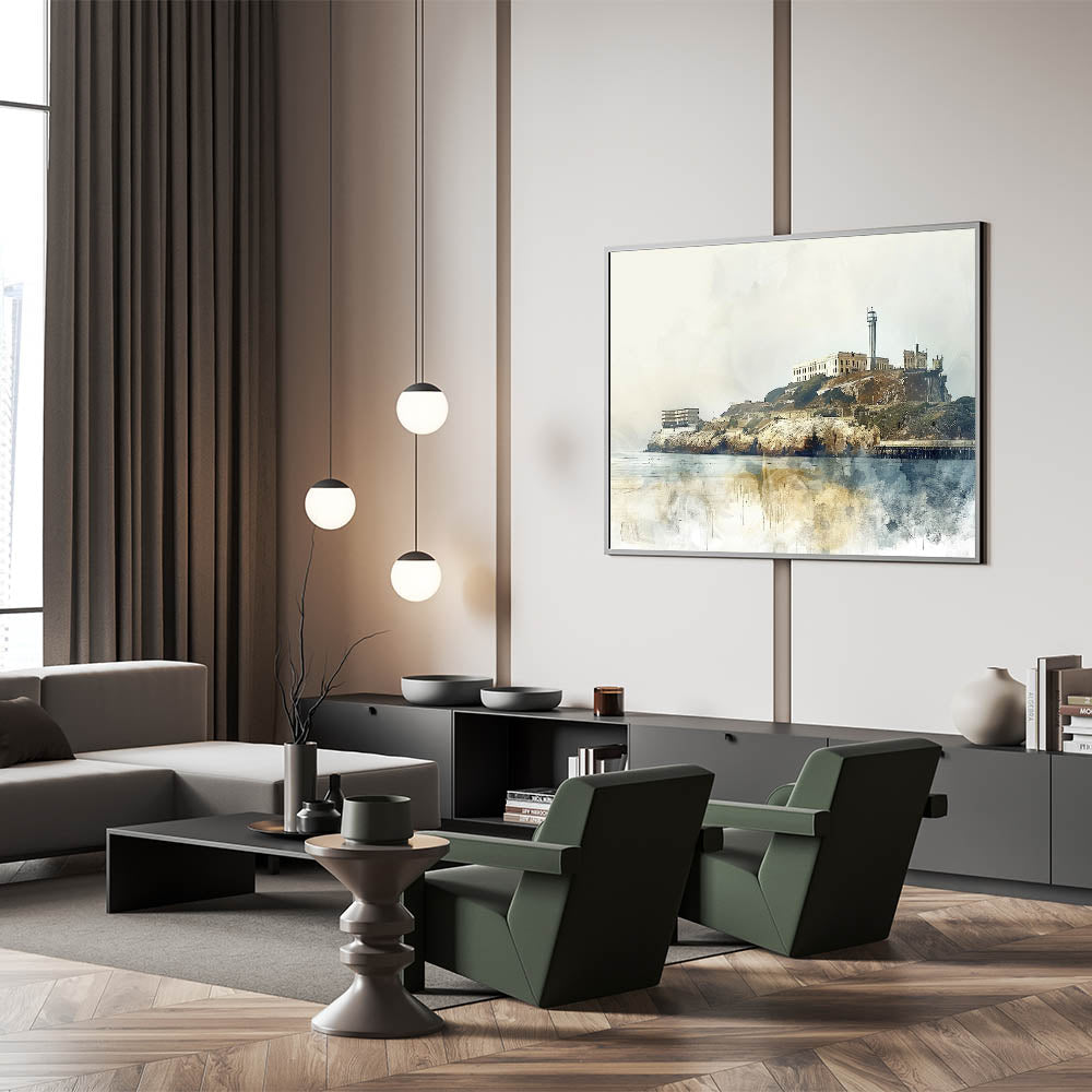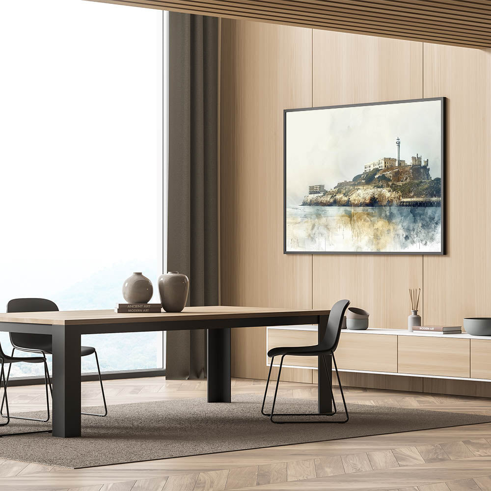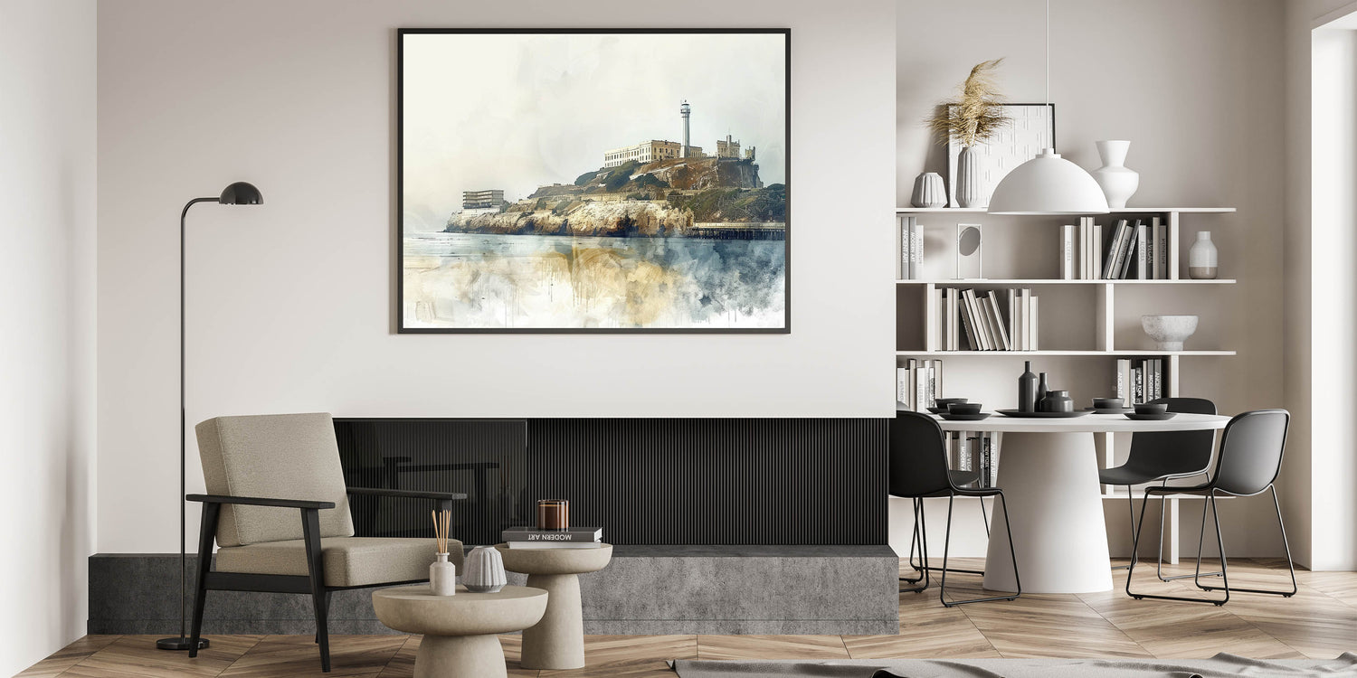 This artwork is perfect for anyone looking to capture the unique blend of history and tranquility that Alcatraz Island represents. Whether you’re decorating a home or office, this piece brings an air of understated elegance.