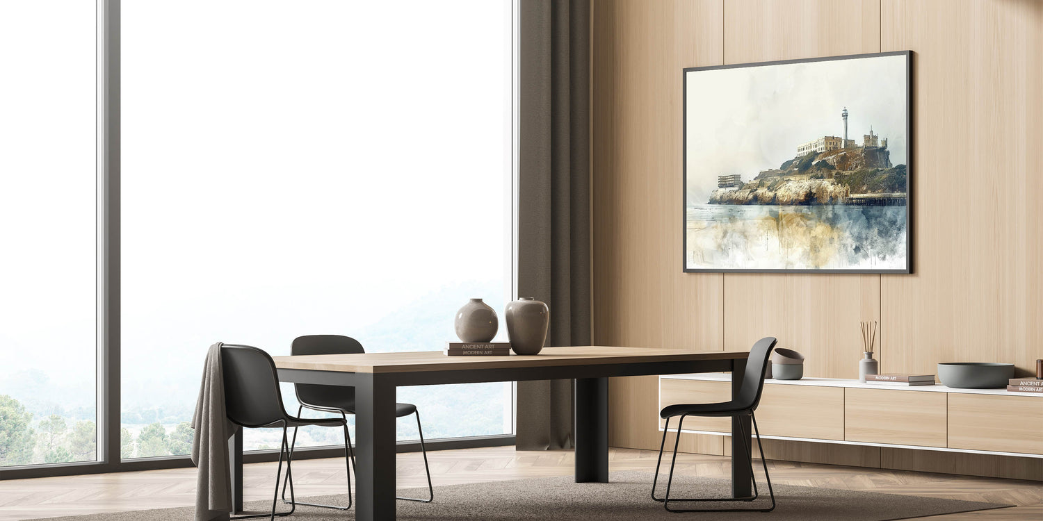 • Alcatraz Island art in various print formats, offering flexibility in decor