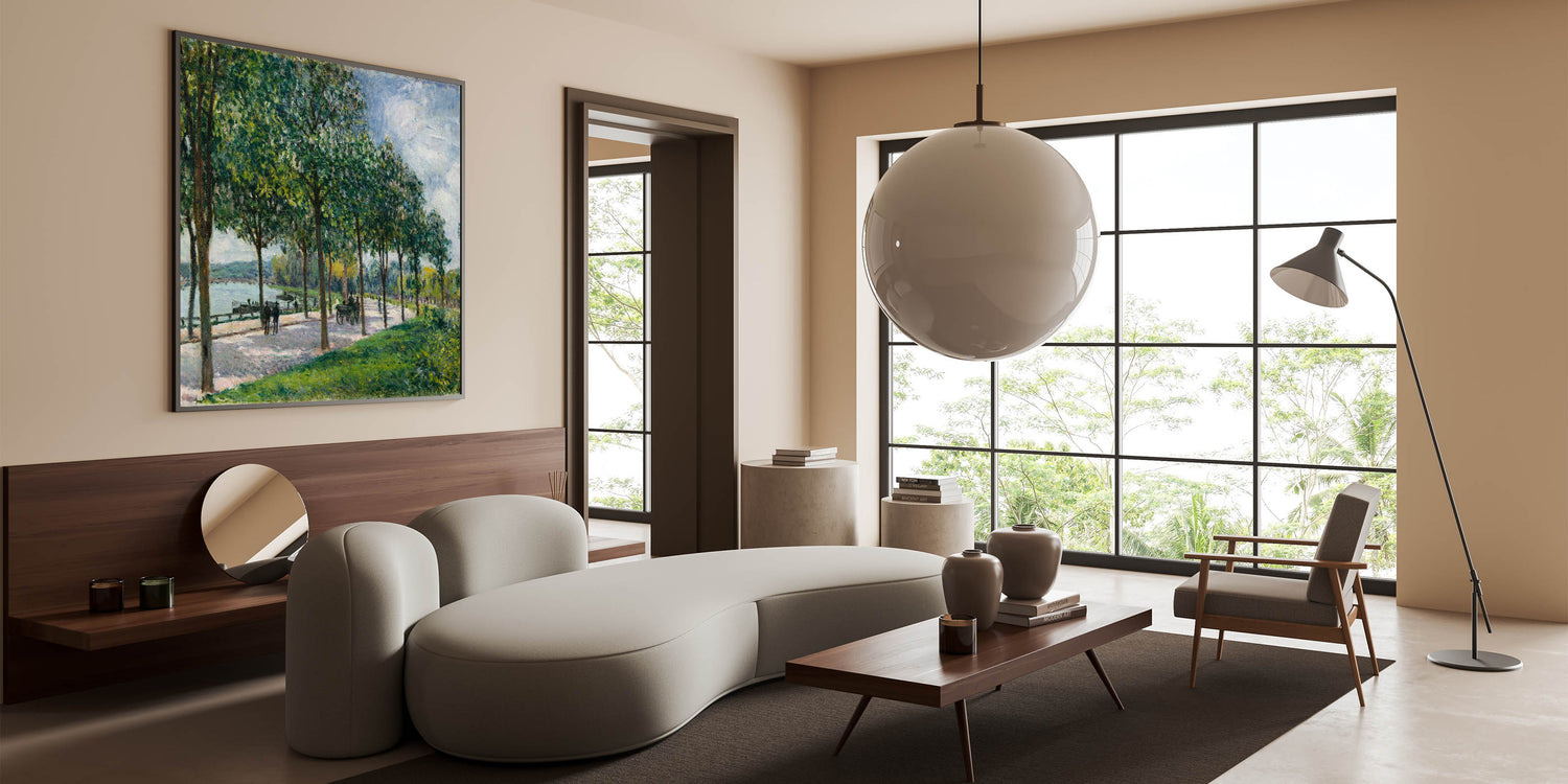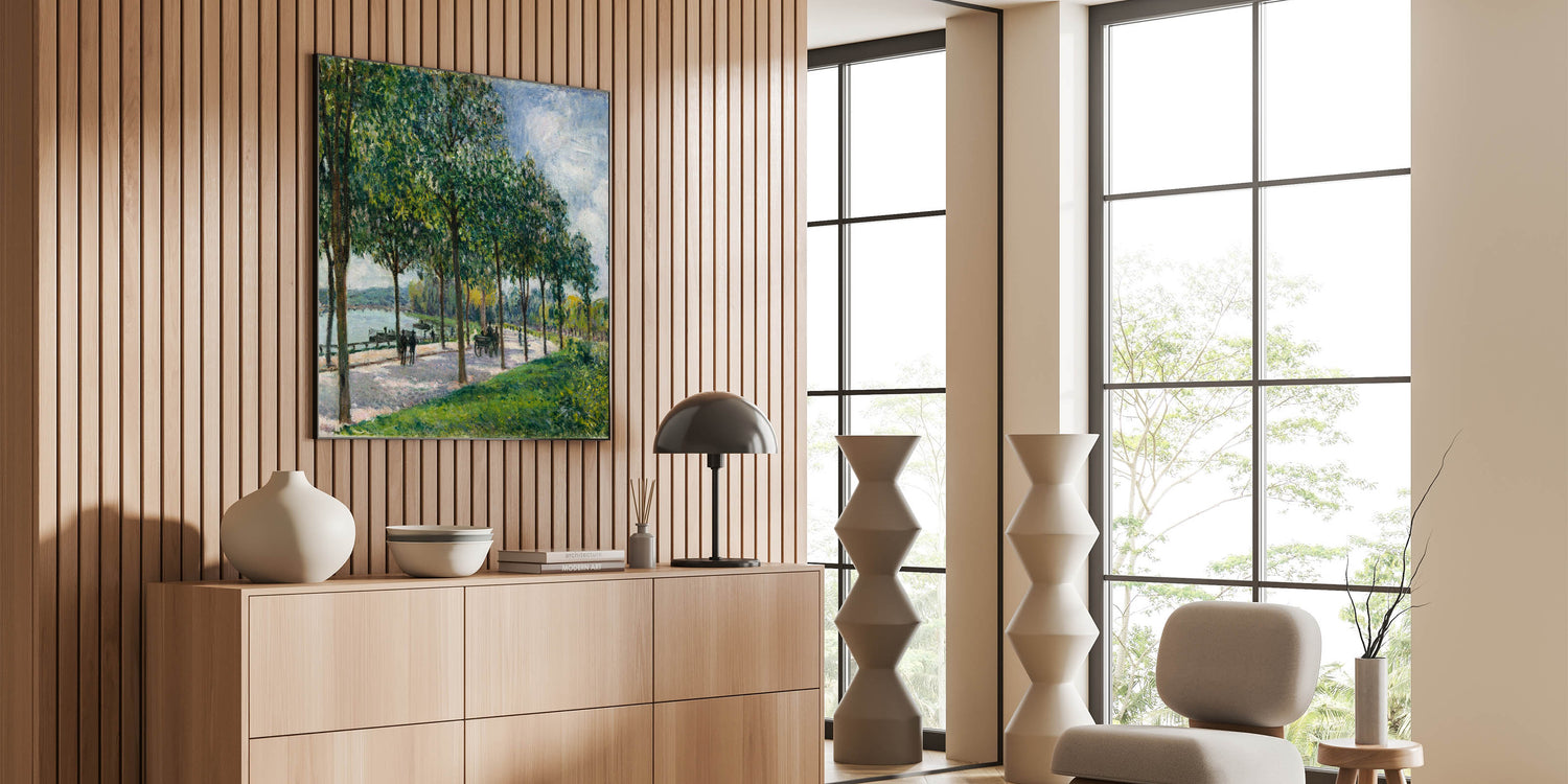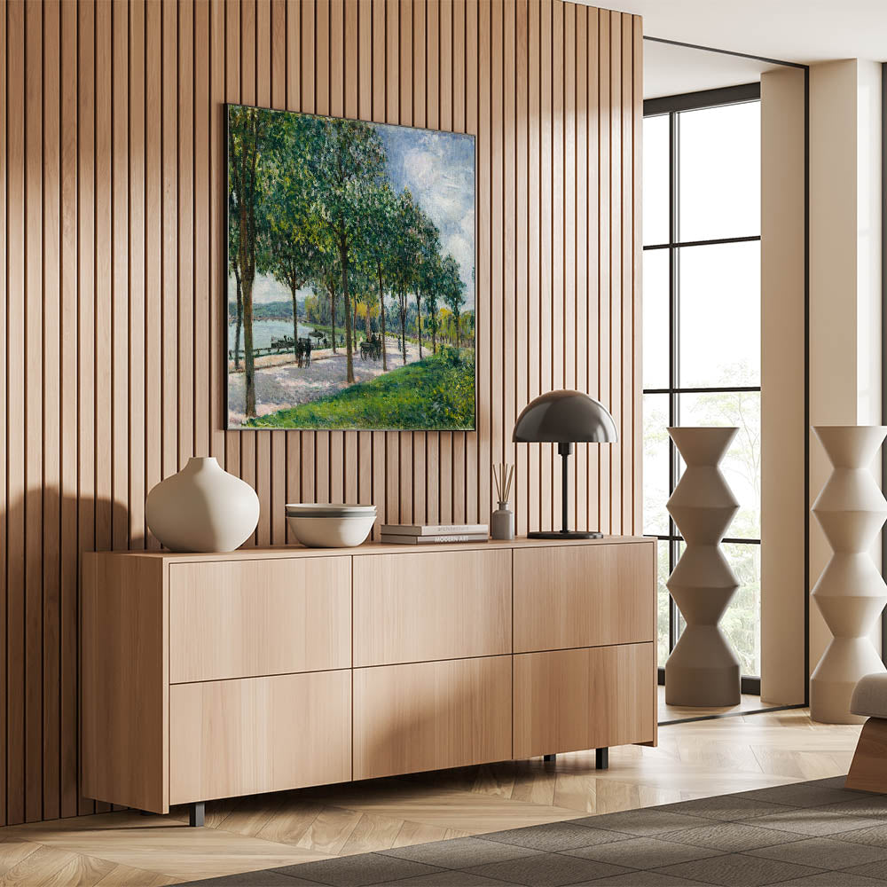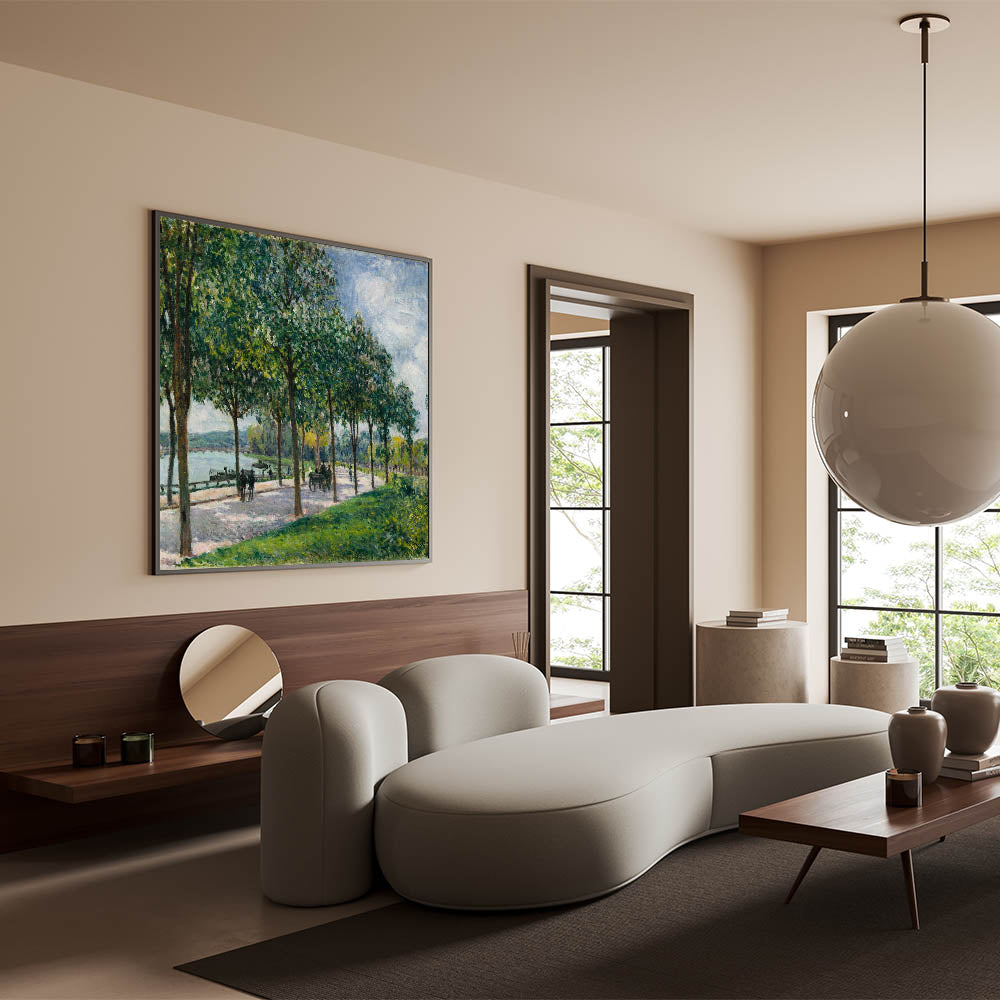 Bring the serene charm of French landscape paintings into your home with this peaceful riverside path scene. Perfect for creating a calming, nature-inspired atmosphere in any room.