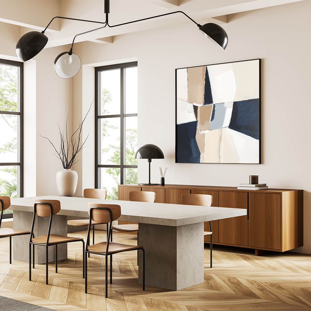 This minimalist abstract wall art celebrates structure, negative space, and earthy contrast. The clean design and solid tones work beautifully in urban, modern, and even boho-inspired spaces. Whether hung alone or paired in a gallery wall, this colorful abstract wall art adds an elegant architectural feel to your space. A must-have abstract for design-forward homes.