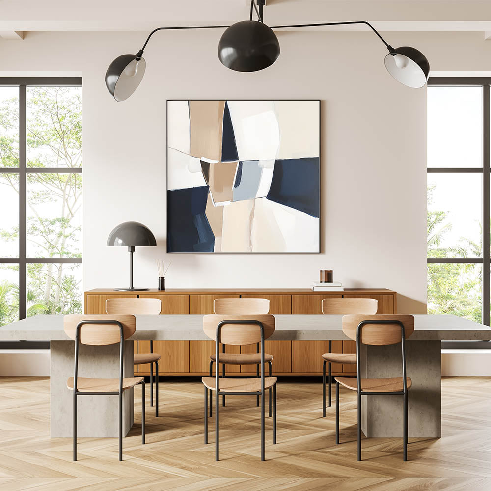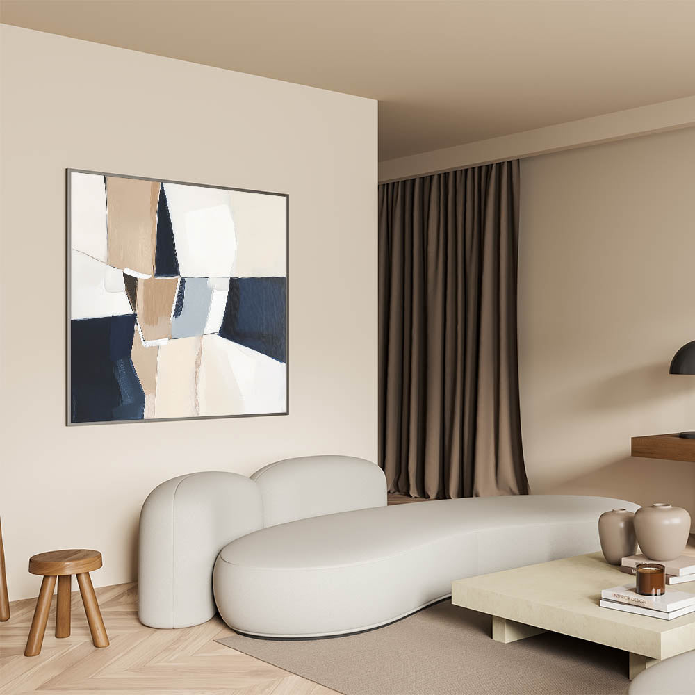 Bring sophistication into your home with this contemporary abstract canvas designed for modern interiors. A stunning fusion of beige, navy, and white shapes creates a visual rhythm rooted in simplicity. This piece is perfect for anyone drawn to structured beauty and geometric abstract wall decor. A bold yet balanced statement for contemporary living.
