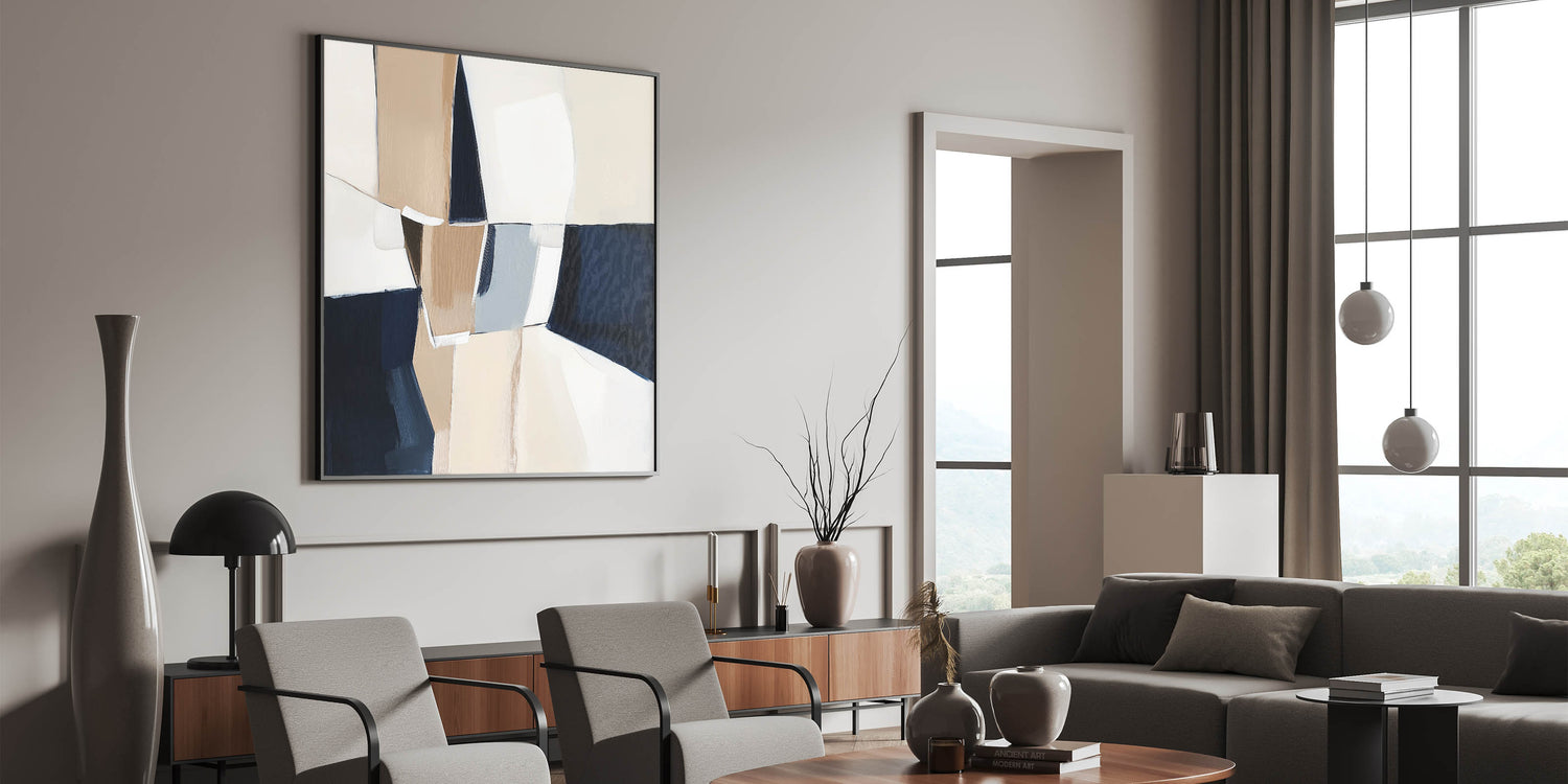 Contemporary Abstract Canvas – Beige and Navy Geometric Wall Art