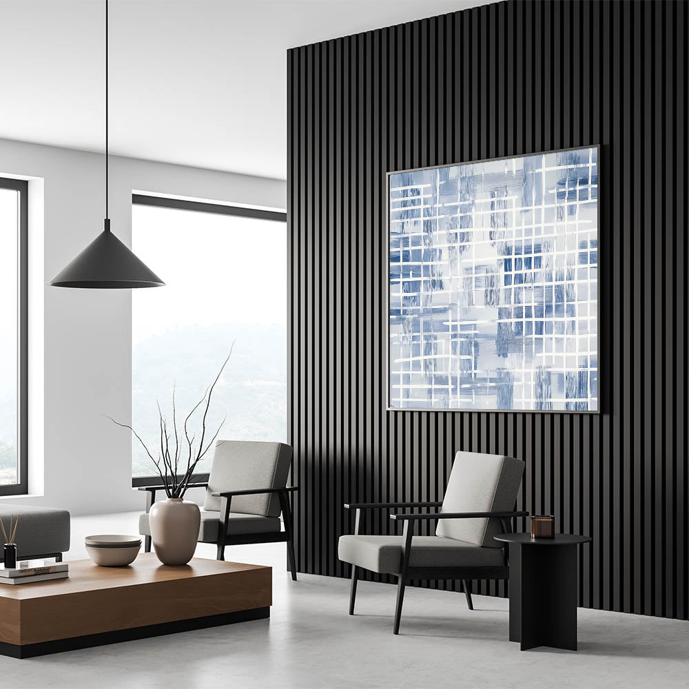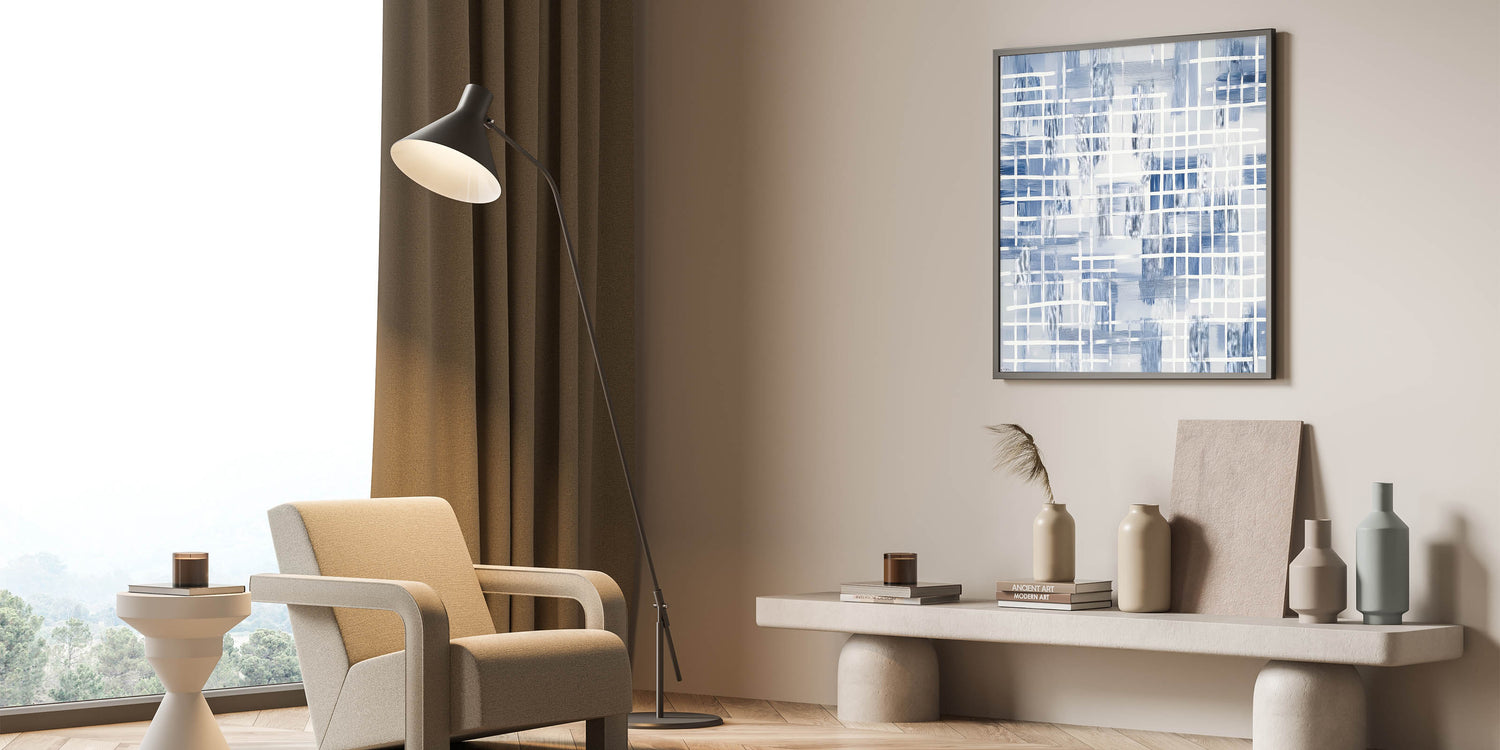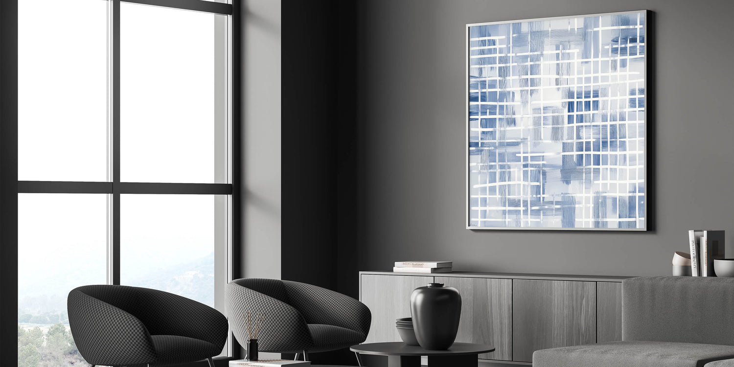 Large Abstract Wall Art – Blue Grid Modern Geometric Wall Decor