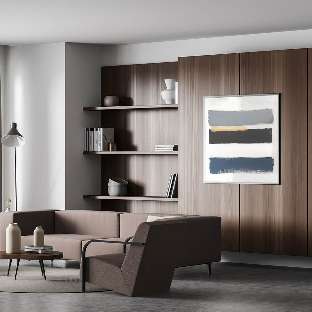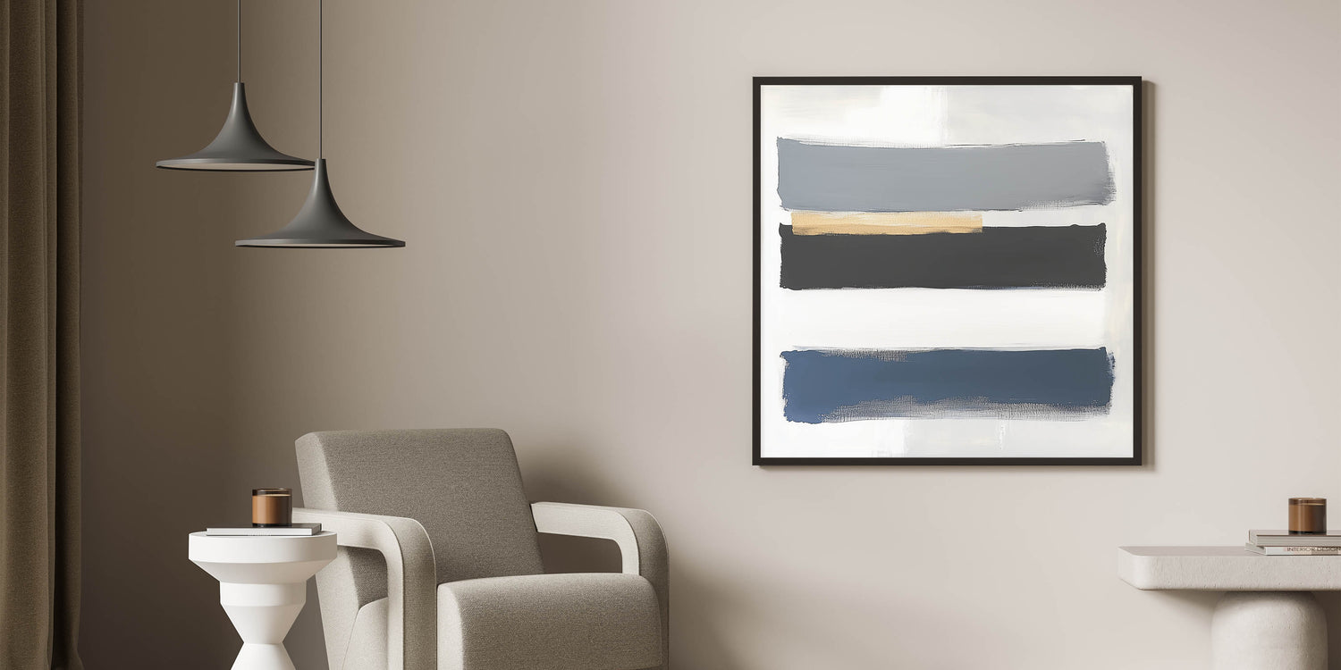This minimalist abstract wall art creates visual interest while maintaining a clean, balanced look. Ideal for living rooms, home offices, and entryways, it brings effortless style to any setting. Whether used to ground a space or add artistic contrast, its palette and brushwork offer timeless appeal with a contemporary twist.