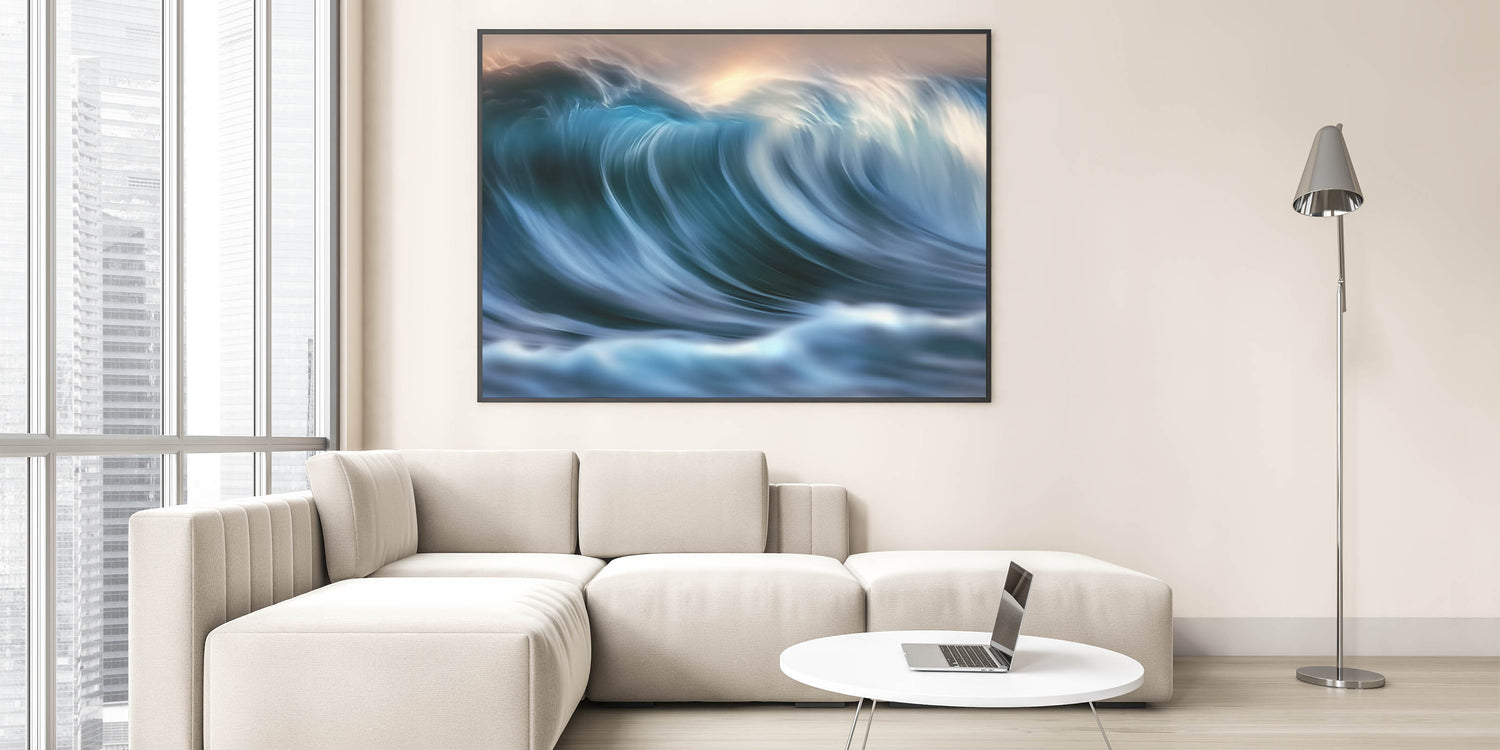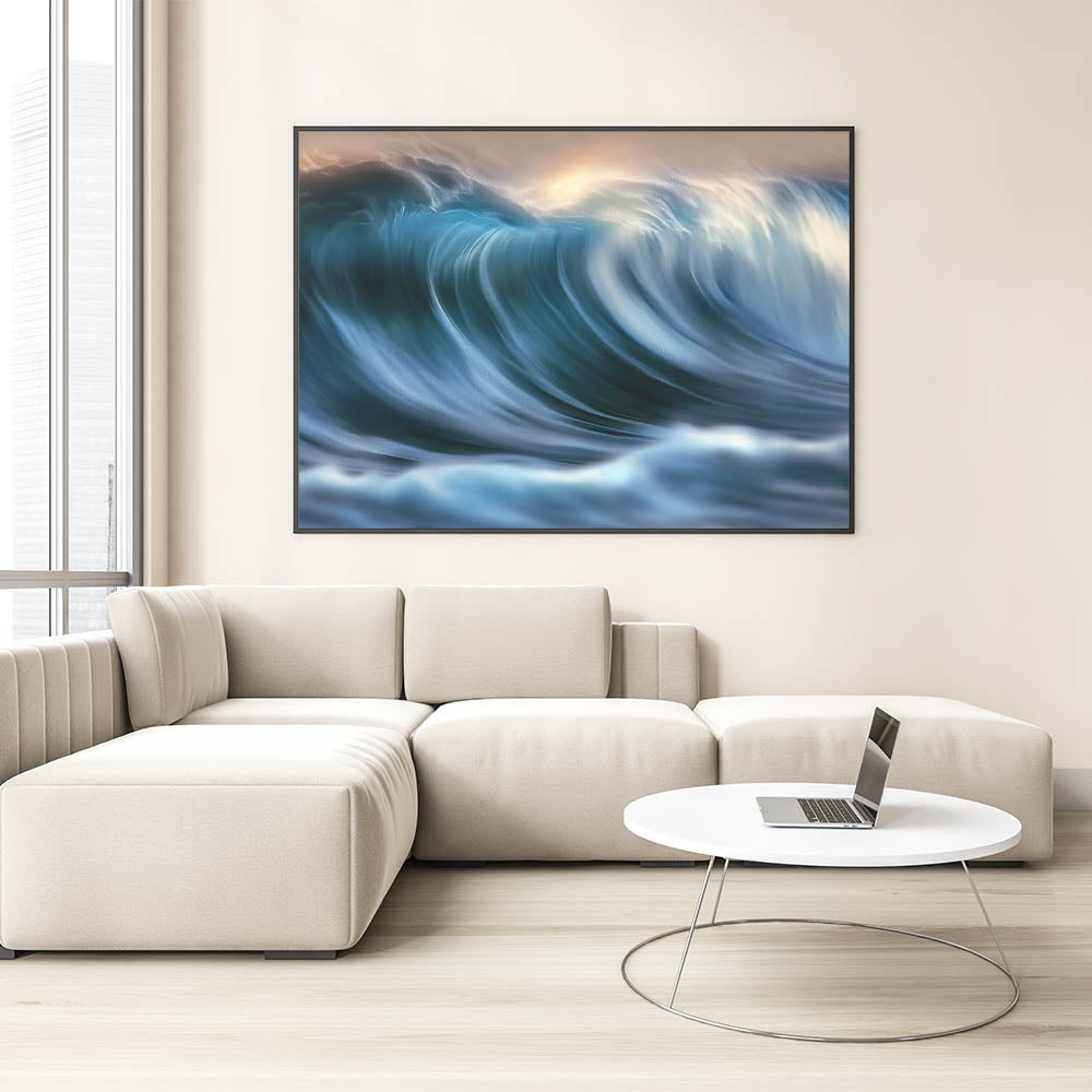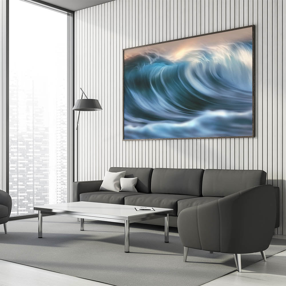 Feel the raw beauty and movement of nature with this captivating piece of dynamic wall art. A powerful ocean wave captured in full motion showcases the elegance of movement photography and the drama of the sea. This modern wall art is a bold, fluid expression of energy and abstract form.