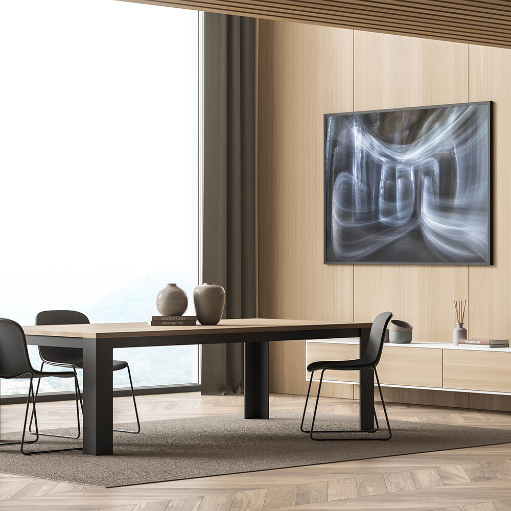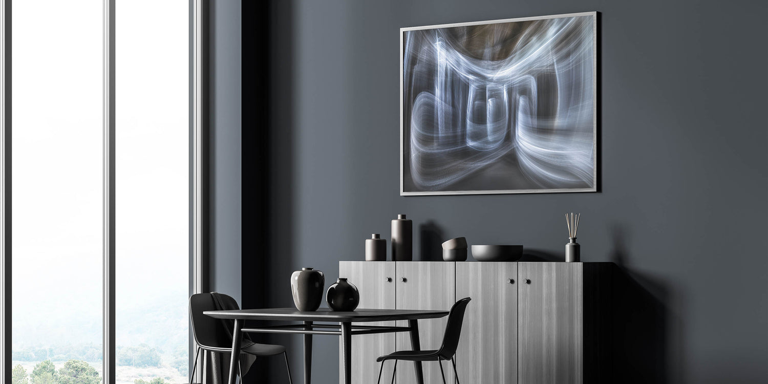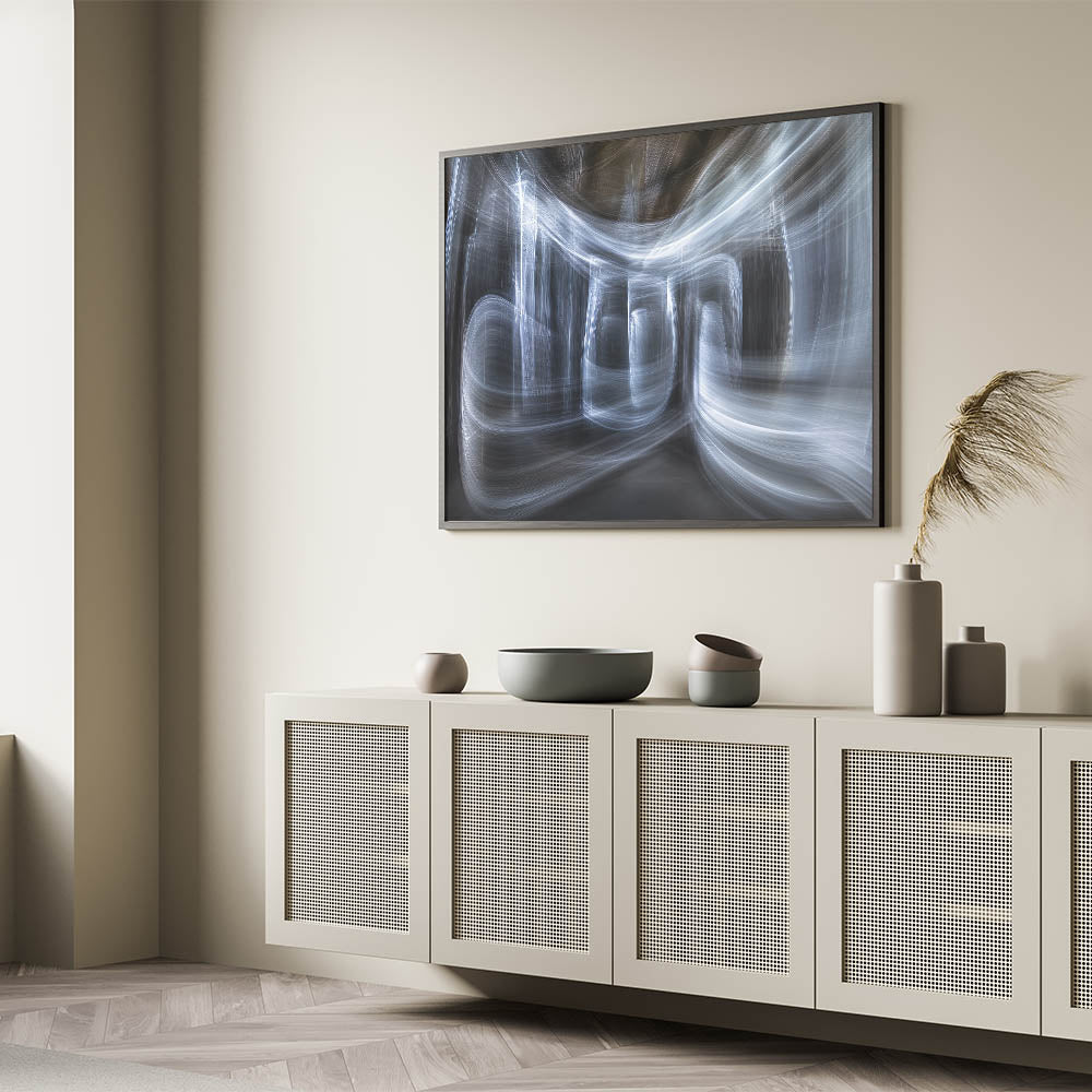 This piece of dynamic abstract art adds sophistication and intrigue to any wall. Its high-contrast composition delivers cool wall art vibes while showcasing the brilliance of energetic photography. A perfect choice for art lovers who crave visual motion and minimalist drama.