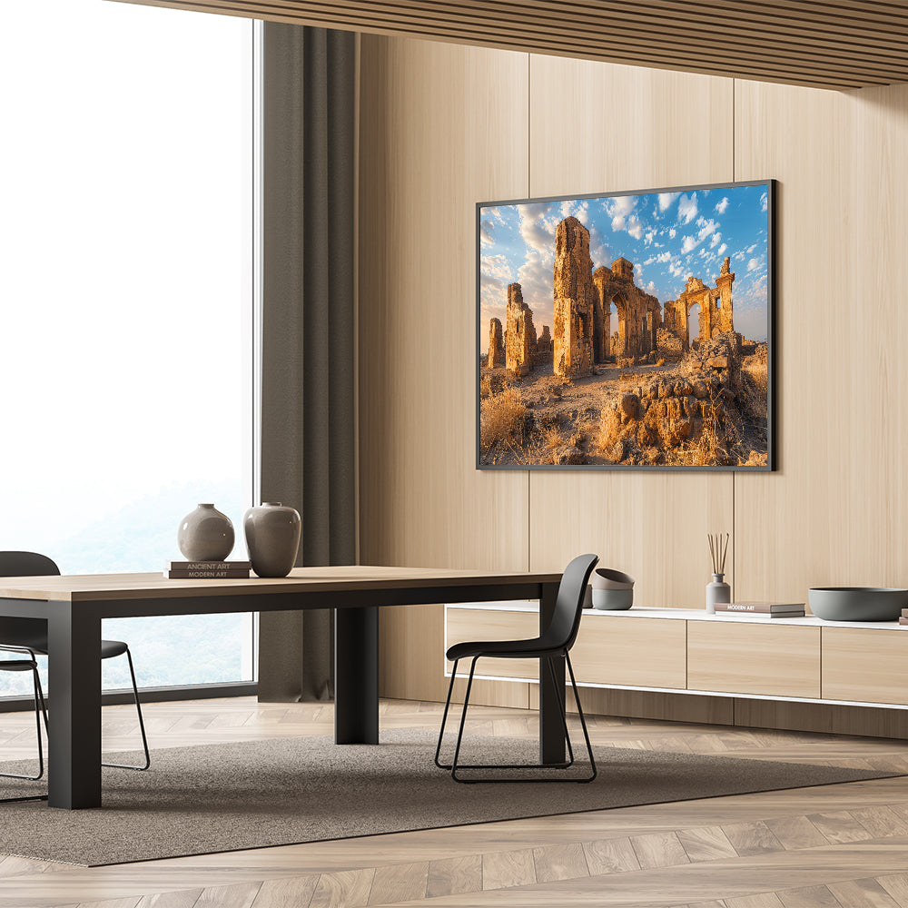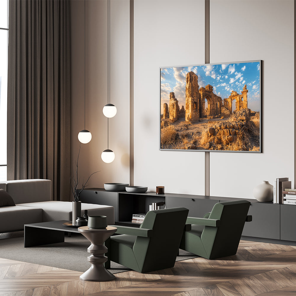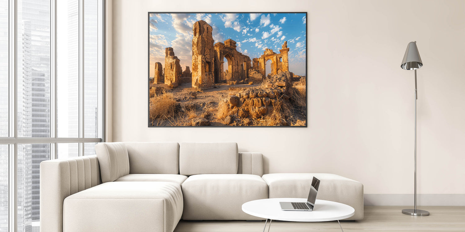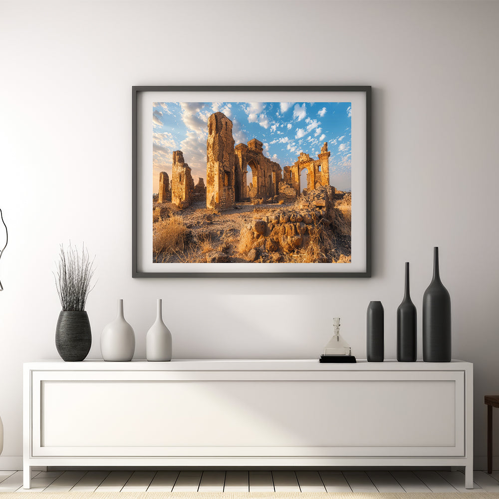 This artwork offers a glimpse into a world long forgotten, where the remains of ancient civilizations stand as a testament to the passage of time. Add a touch of history and natural beauty to your decor with this evocative representation of desert ruins.