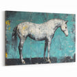 Elevate your decor with this captivating abstract horse wall art. This oil painting features a majestic white horse rendered in a contemporary style against a striking turquoise background. The bold brushstrokes and textured finish give this piece a modern yet timeless appeal, making it perfect for horse lovers and art enthusiasts alike.