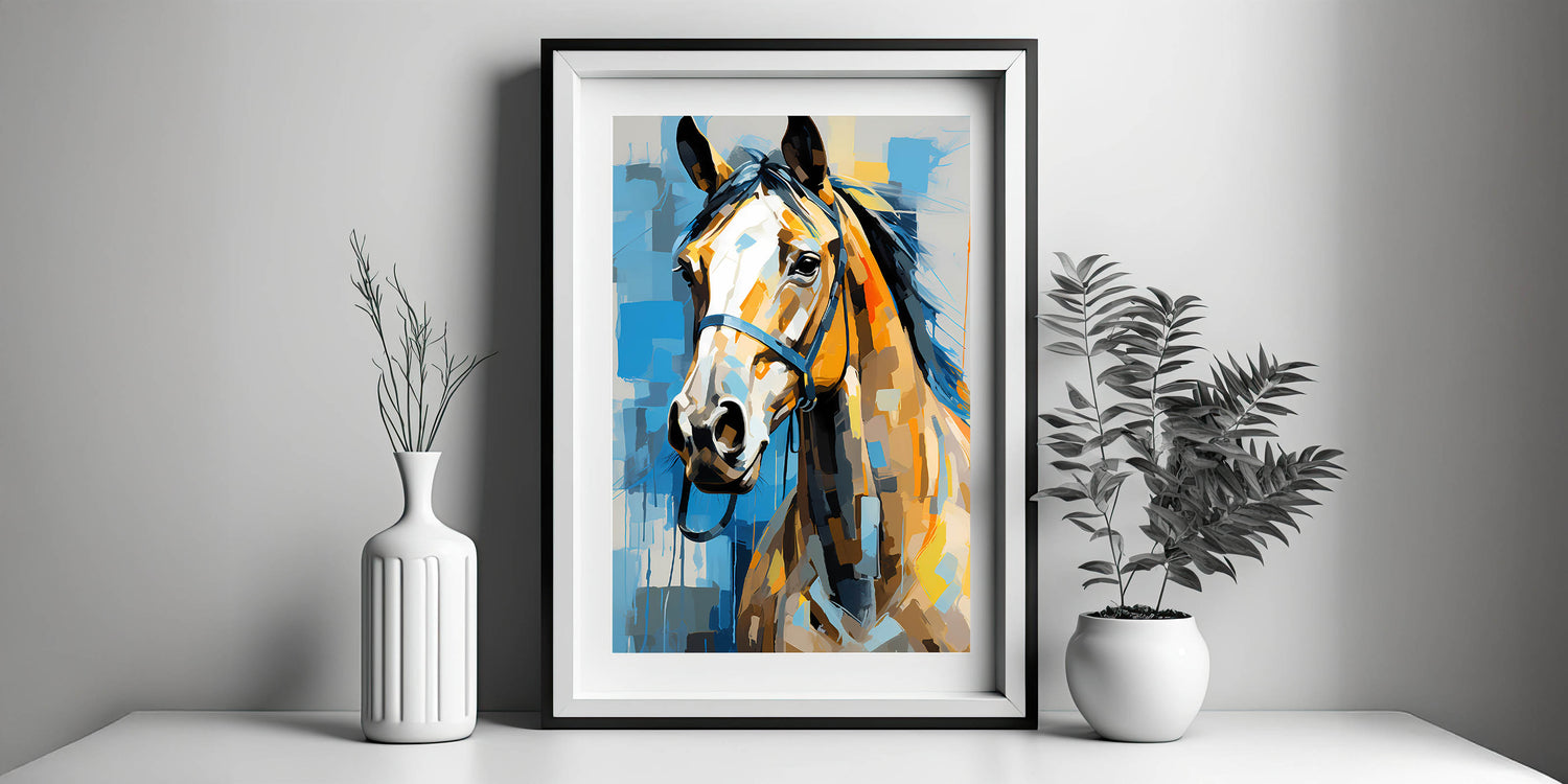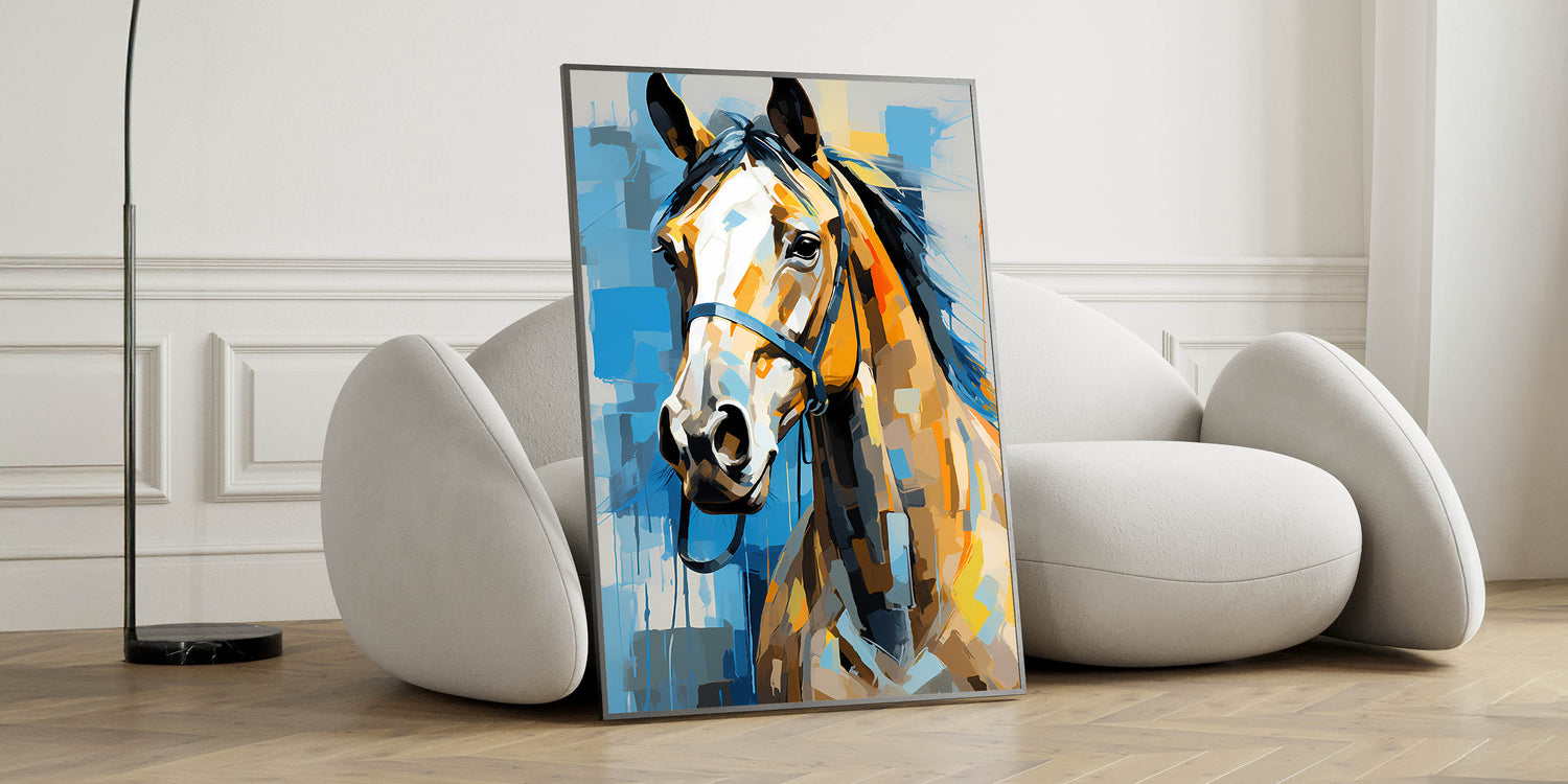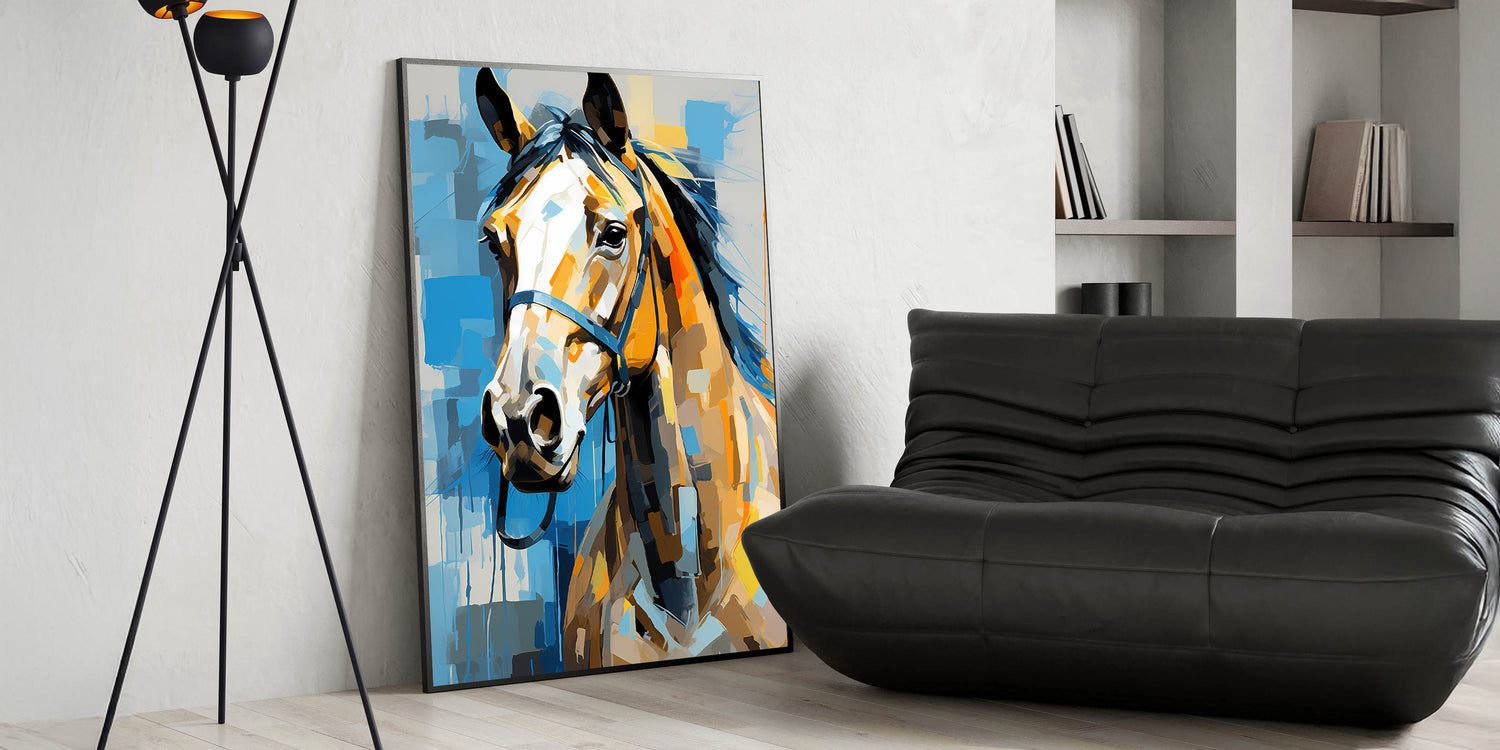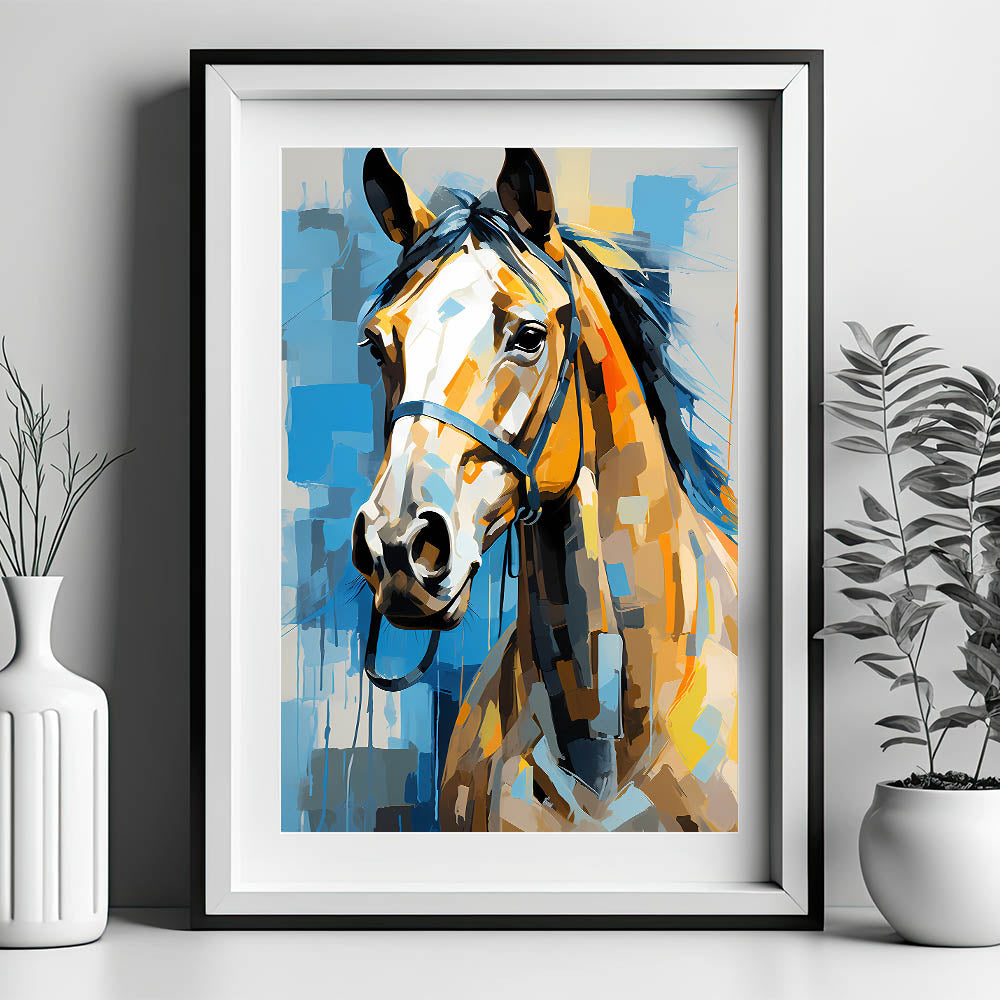 • Striking Abstract Design: A contemporary interpretation of a horse portrait, blending bold colors and modern artistry.