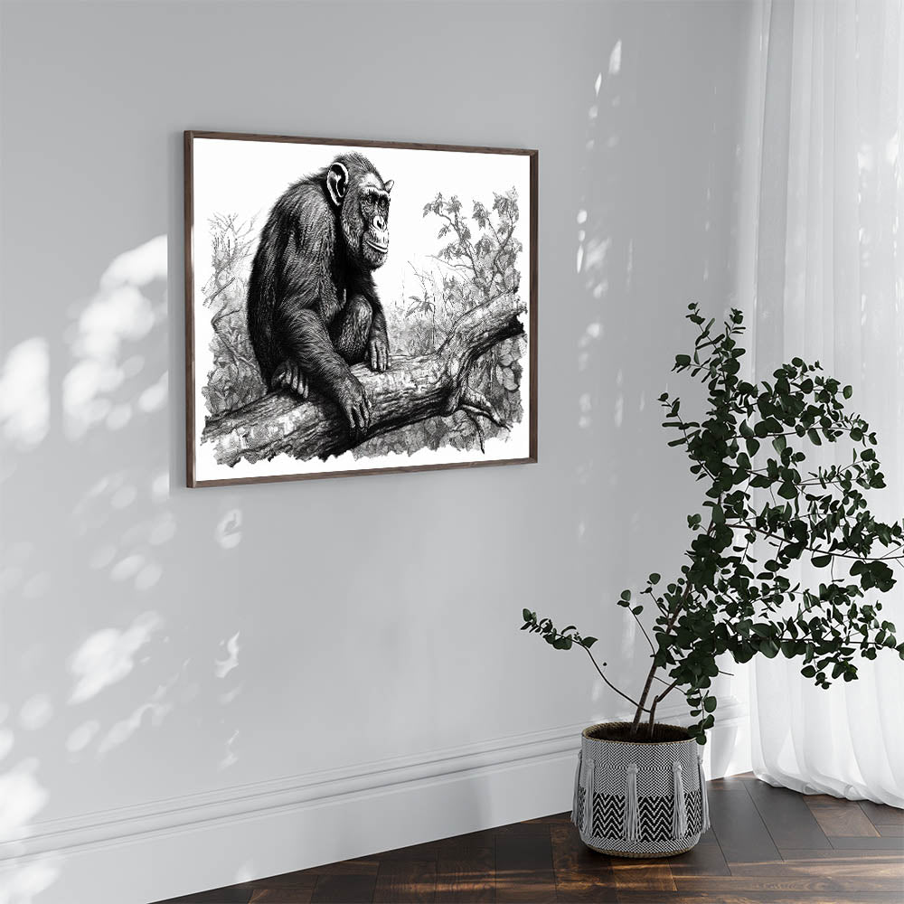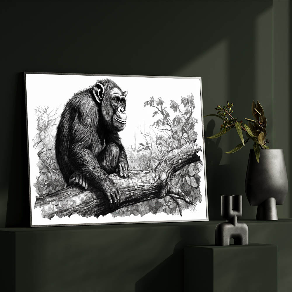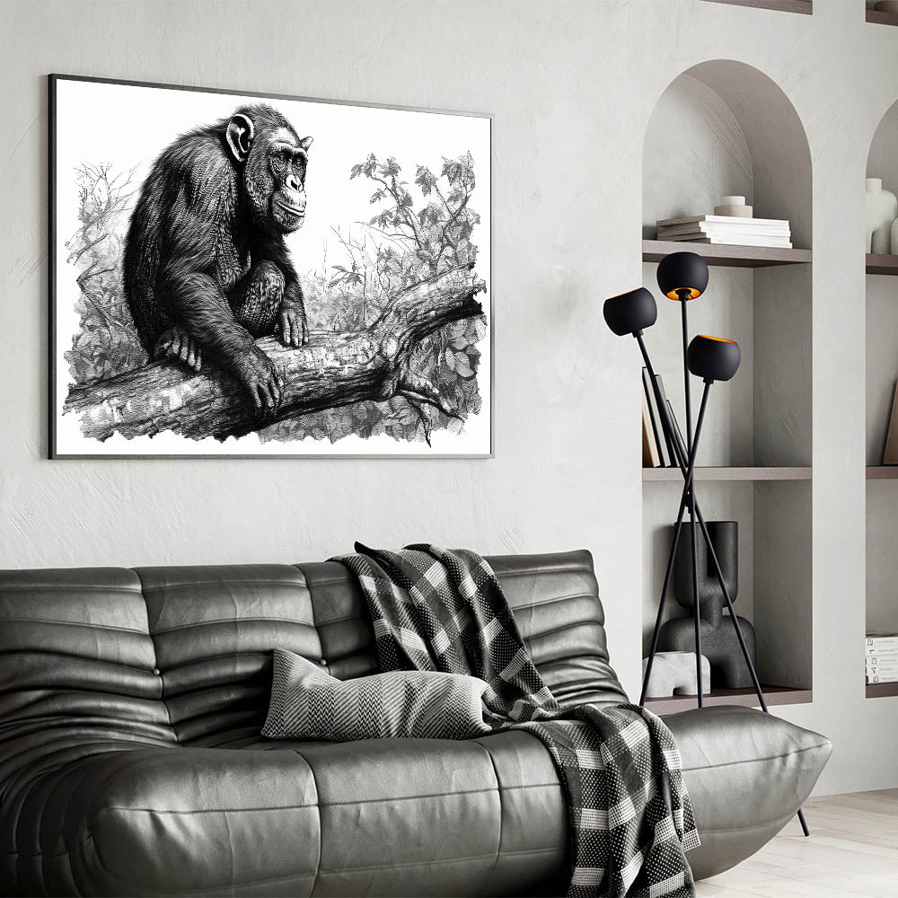 - Intricate Sketch Design: The fine lines and detailed rendering bring the chimpanzee and its surroundings to life, creating a captivating focal point for any room.