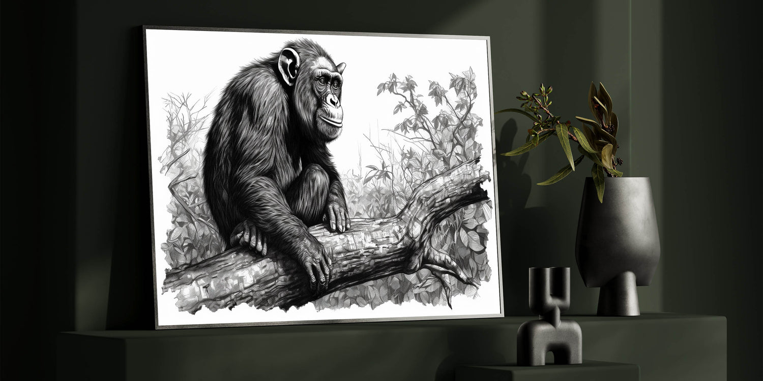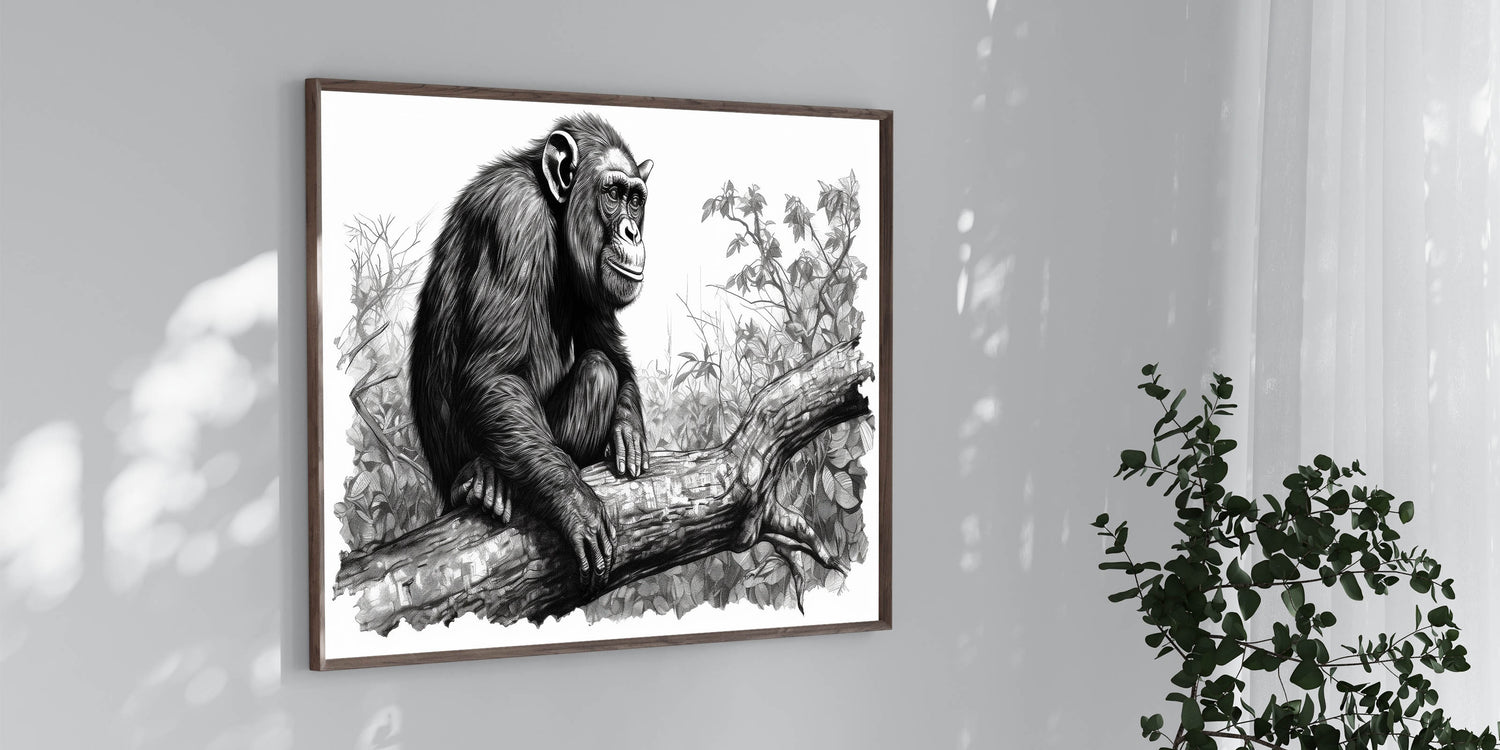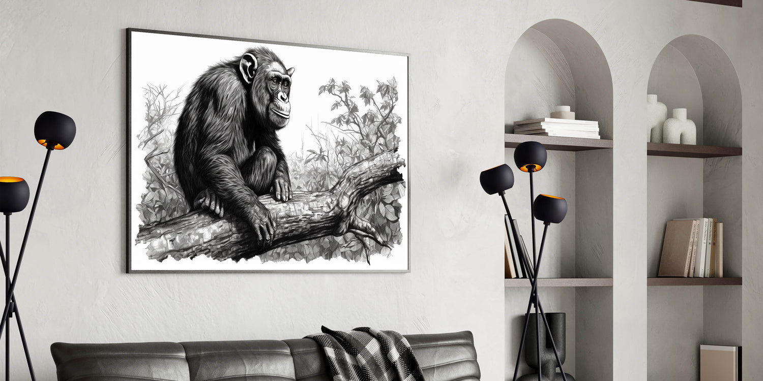 - Intricate Sketch Design: The fine lines and detailed rendering bring the chimpanzee and its surroundings to life, creating a captivating focal point for any room.