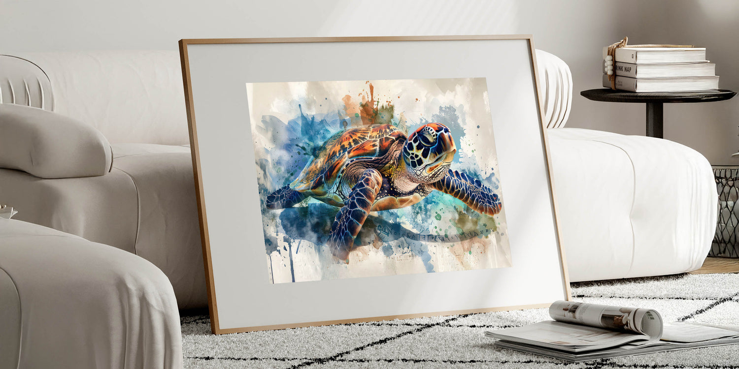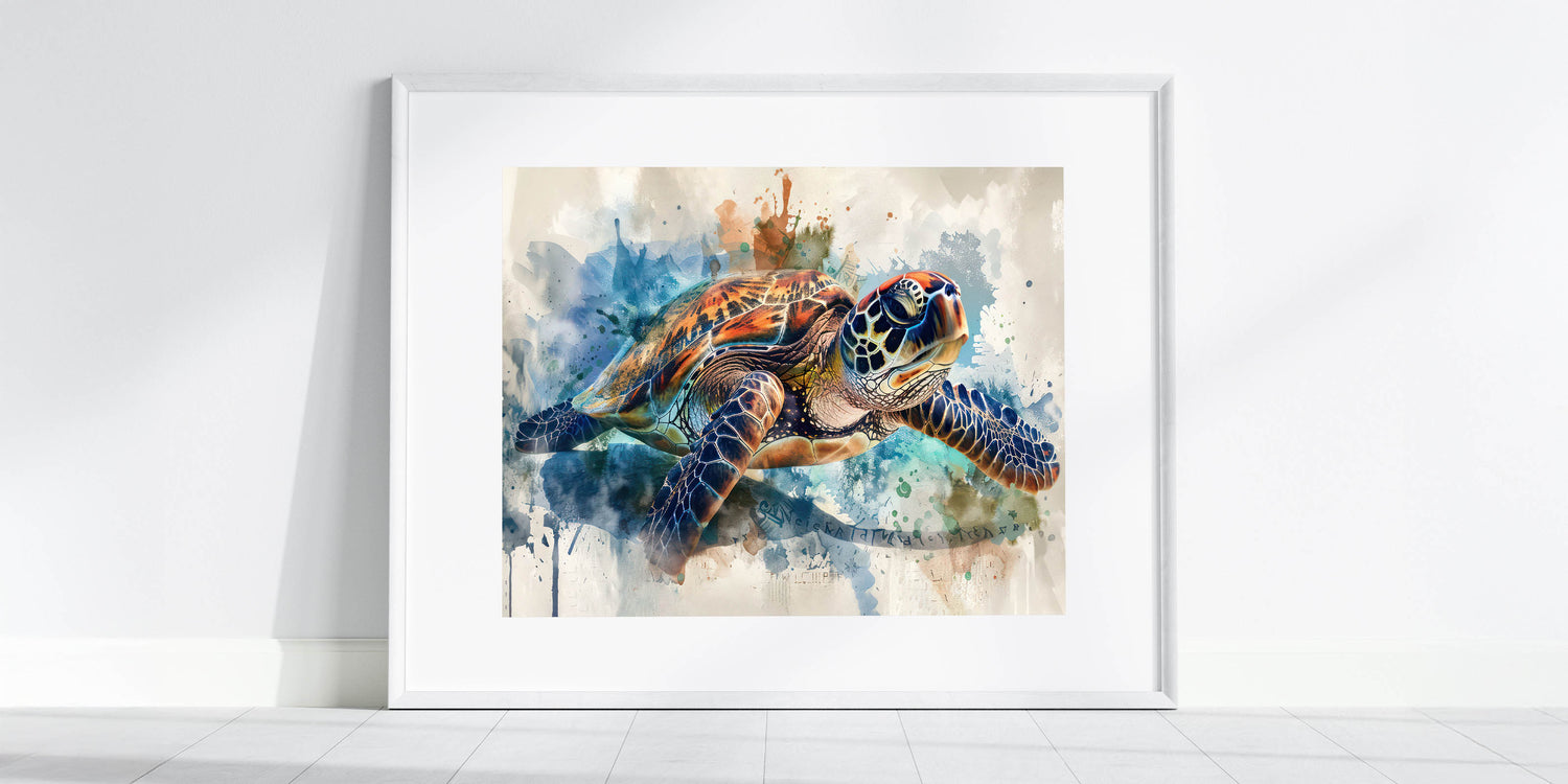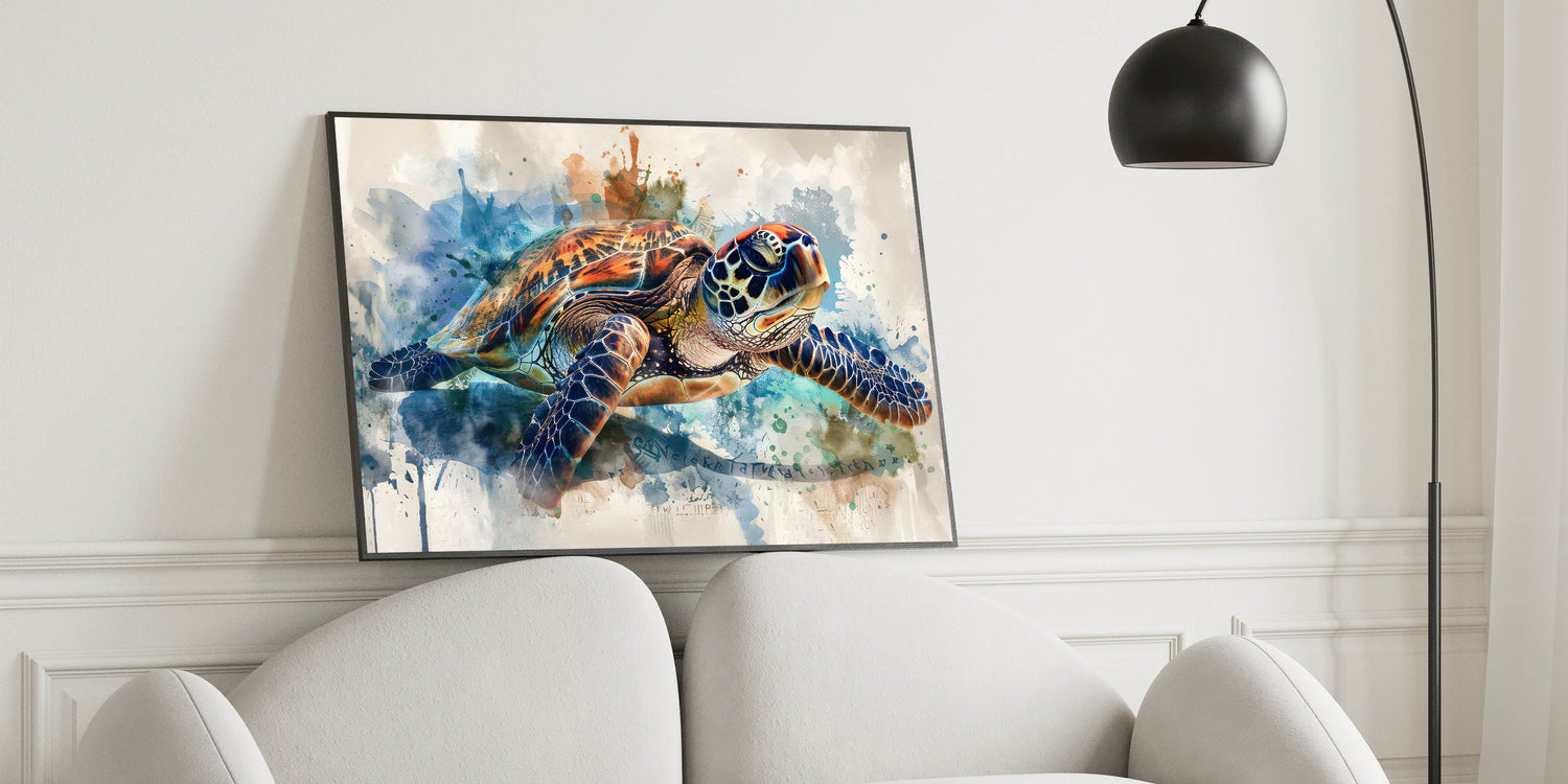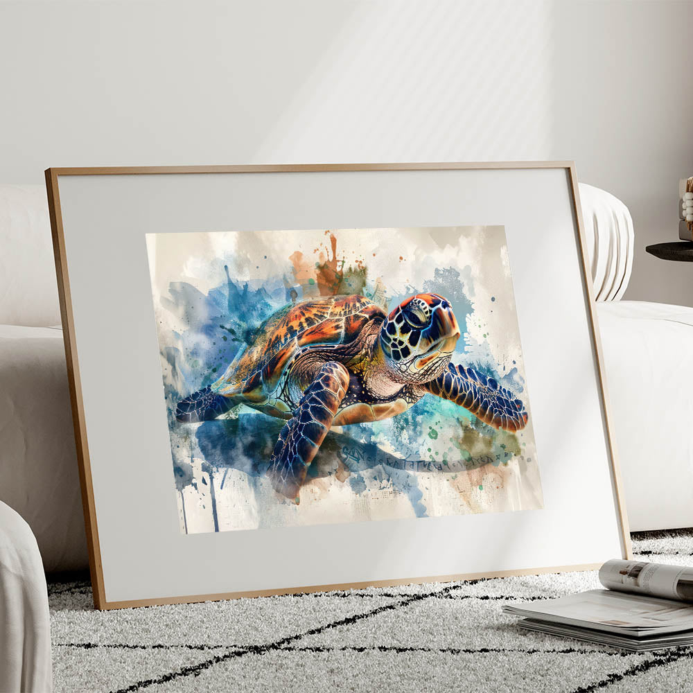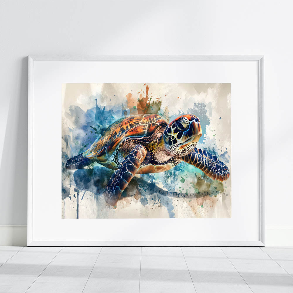 Infuse your home with the vibrant energy of the ocean through this stunning turtle art print. Whether you're decorating a modern space or simply want to add a bold statement piece, this artwork will be a perfect addition. Explore more dynamic and colorful marine life art in our collection.