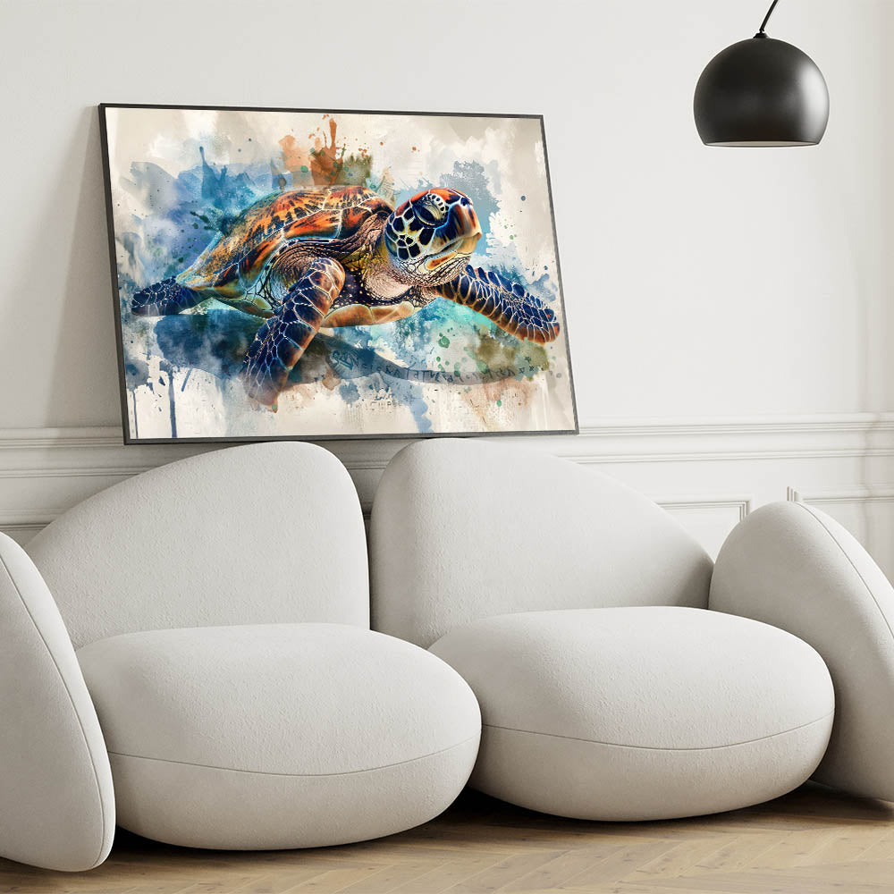 Dynamic Turtle Wall Art - Vibrant Marine Life Canvas for Ocean Decor