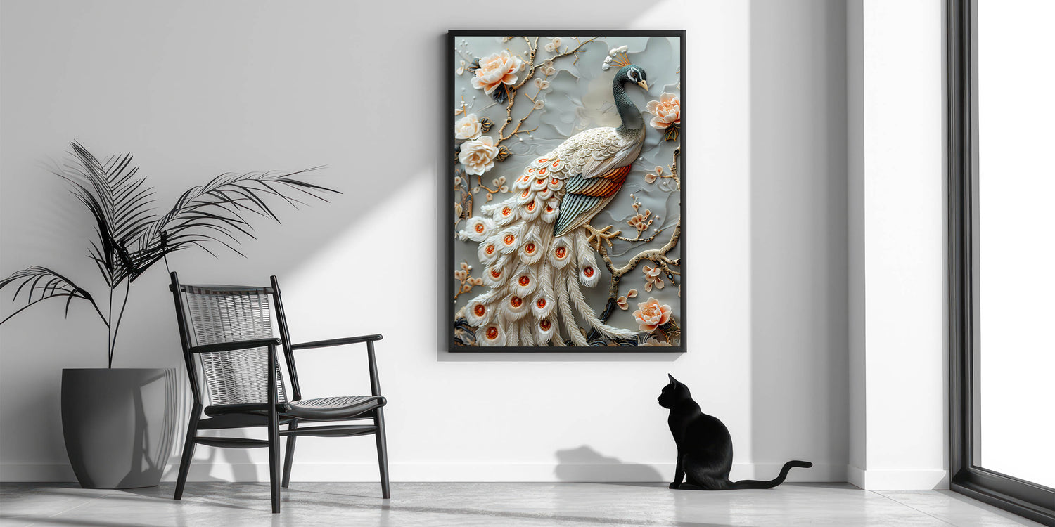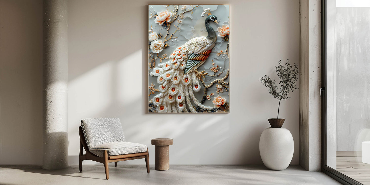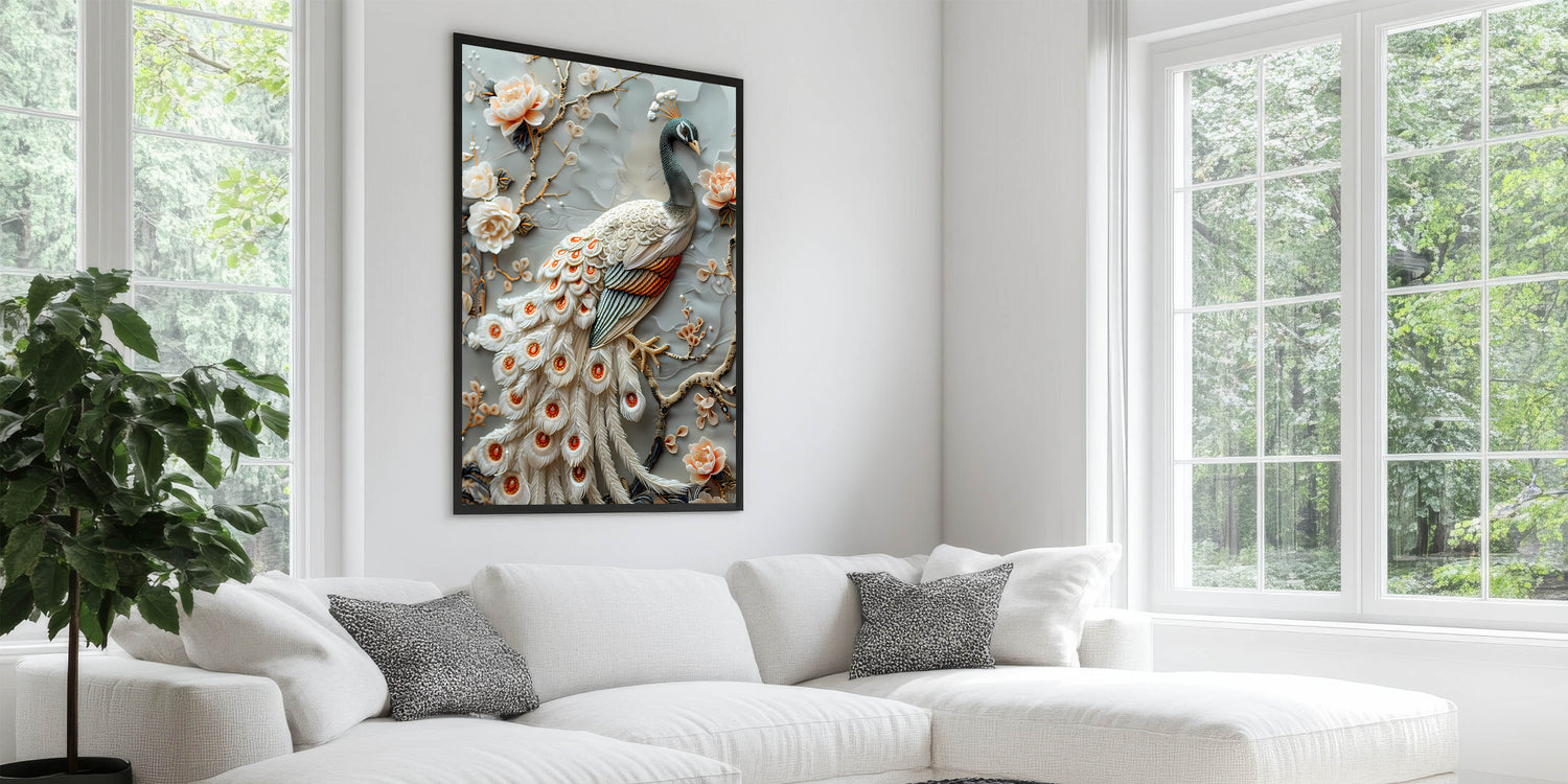 - Intricate Artistic Detailing: High-resolution reproduction of intricate floral patterns and the peacock's elegant plumage.