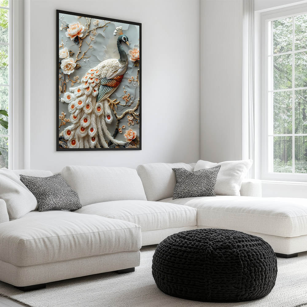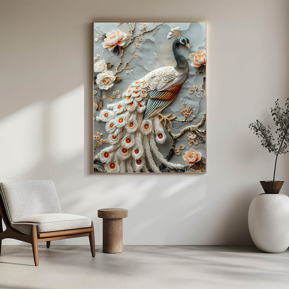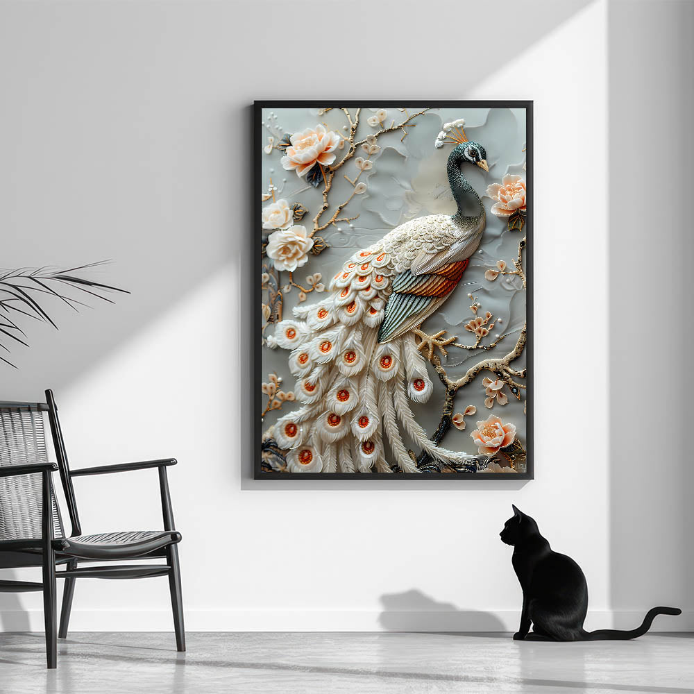 - Intricate Artistic Detailing: High-resolution reproduction of intricate floral patterns and the peacock's elegant plumage.