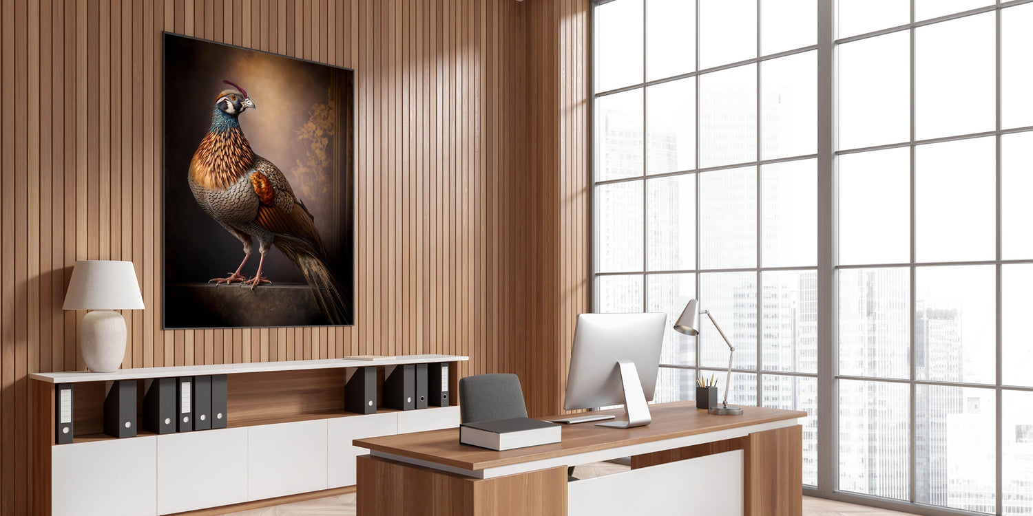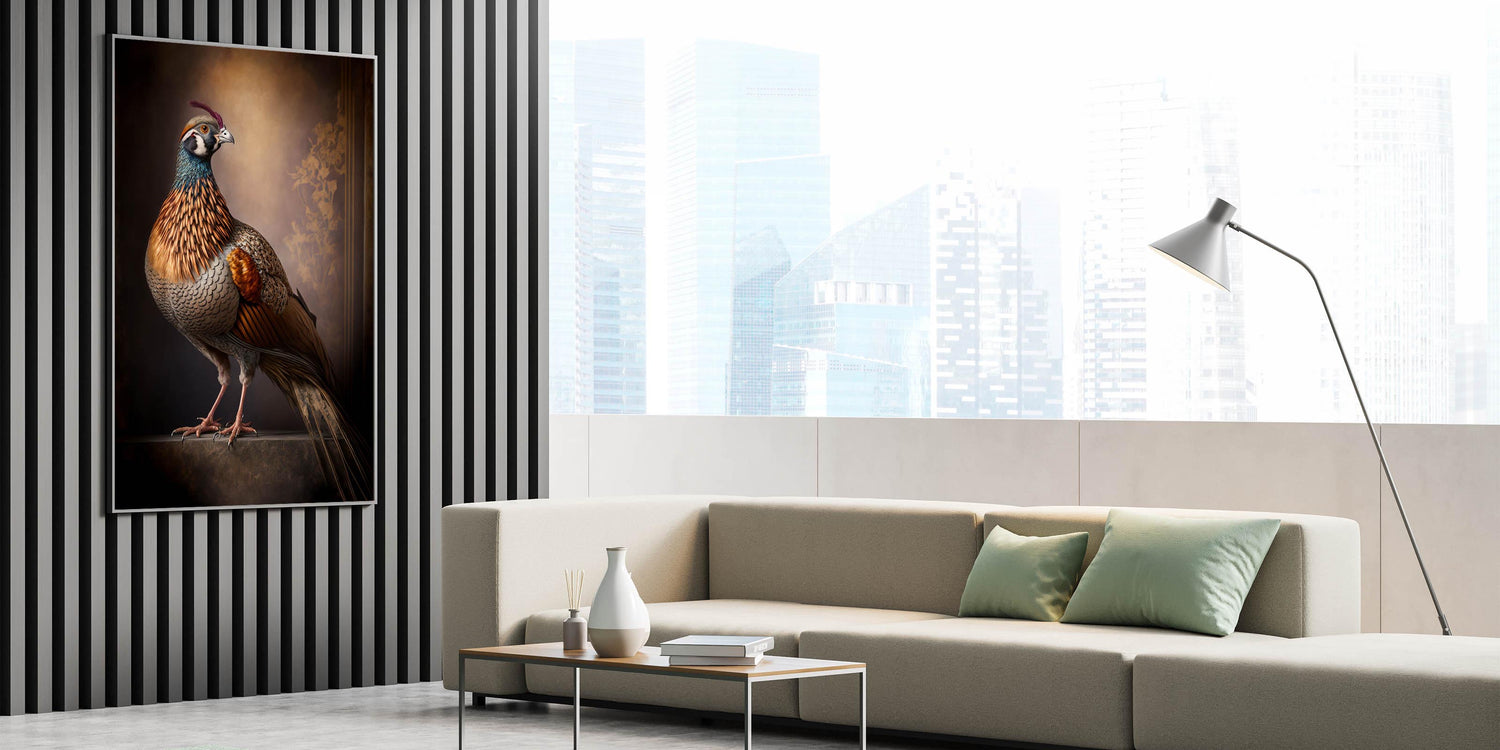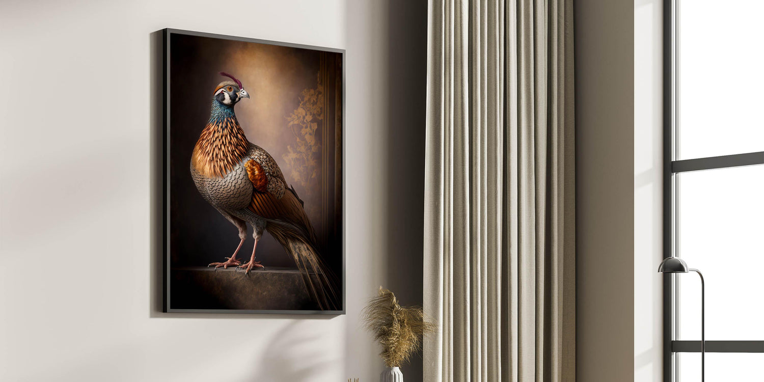 - Unique Design: A lifelike depiction of a pheasant with detailed feathers and a textured backdrop, adding depth and sophistication.
