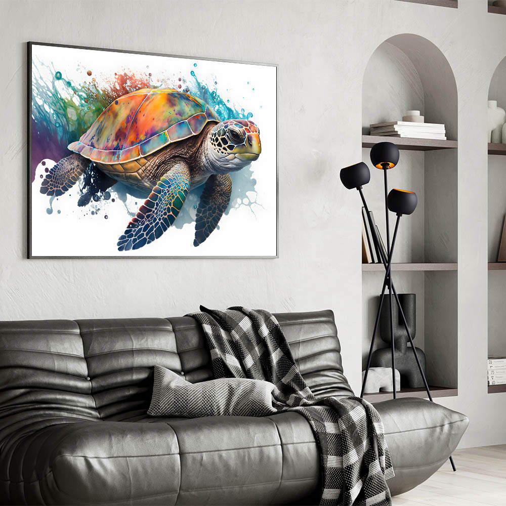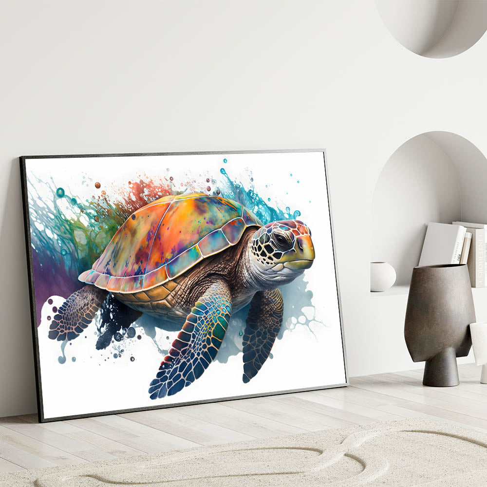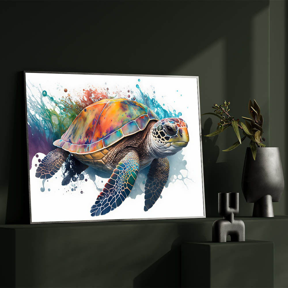 Transform your home with this unique turtle art print, designed to bring the dynamic beauty of the ocean into your living space. Whether you’re decorating a modern or eclectic-themed room, this piece will make a stunning addition to your art collection. Explore more dynamic and colorful marine life art in our collection.