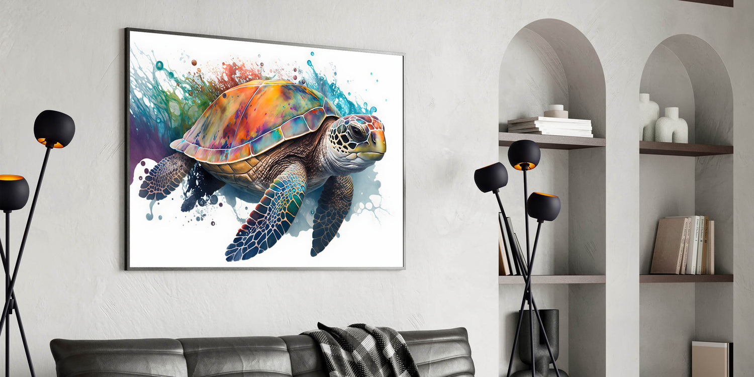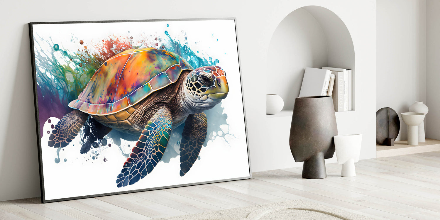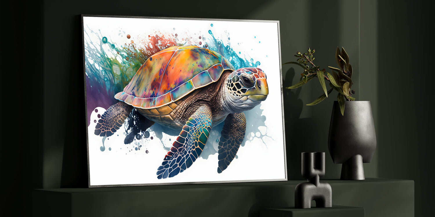 Transform your home with this unique turtle art print, designed to bring the dynamic beauty of the ocean into your living space. Whether you’re decorating a modern or eclectic-themed room, this piece will make a stunning addition to your art collection. Explore more dynamic and colorful marine life art in our collection.