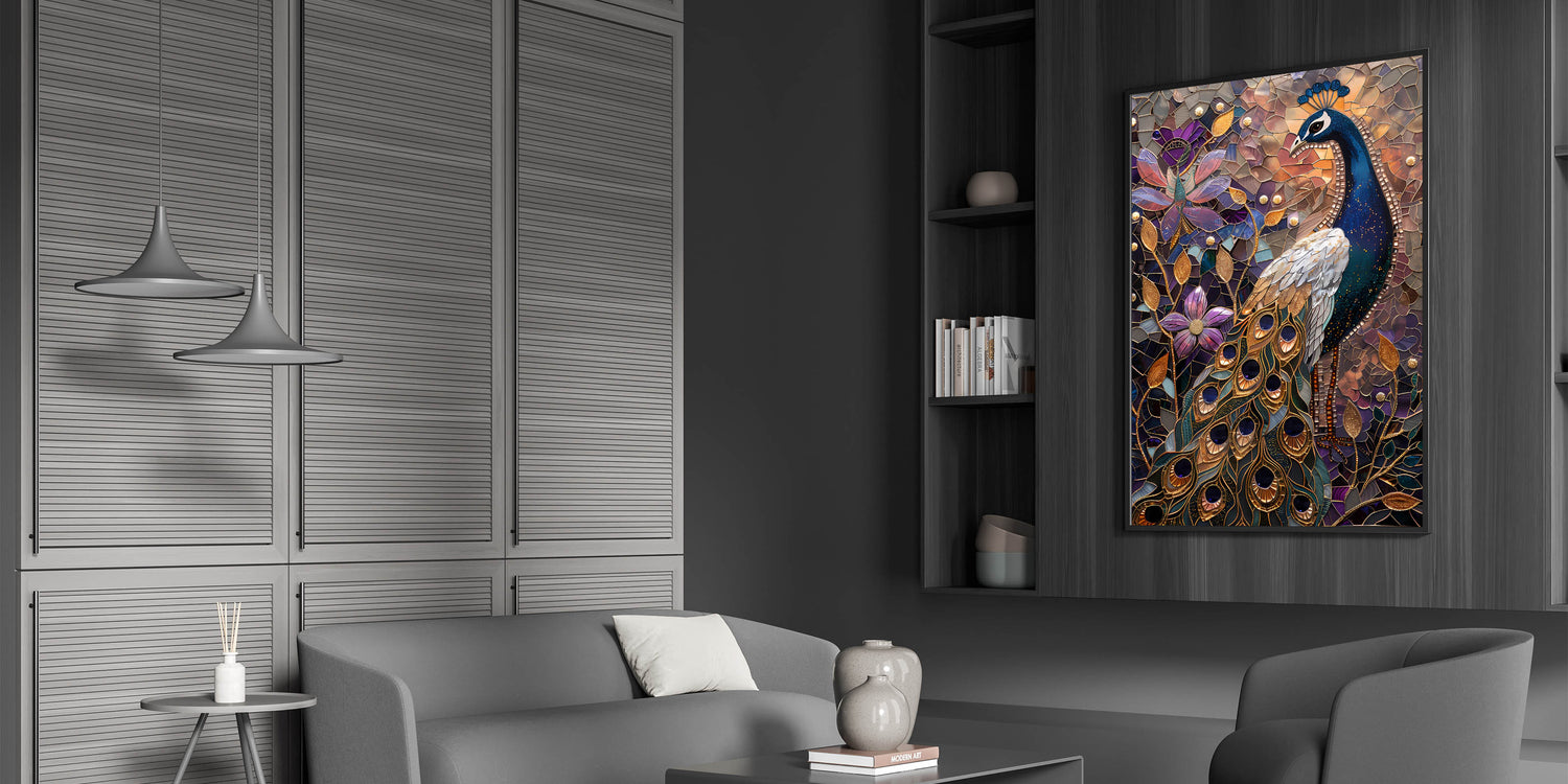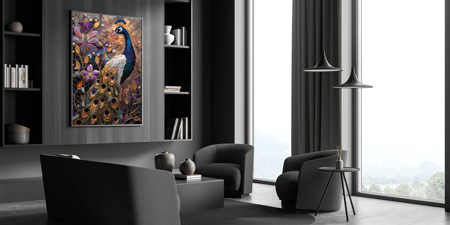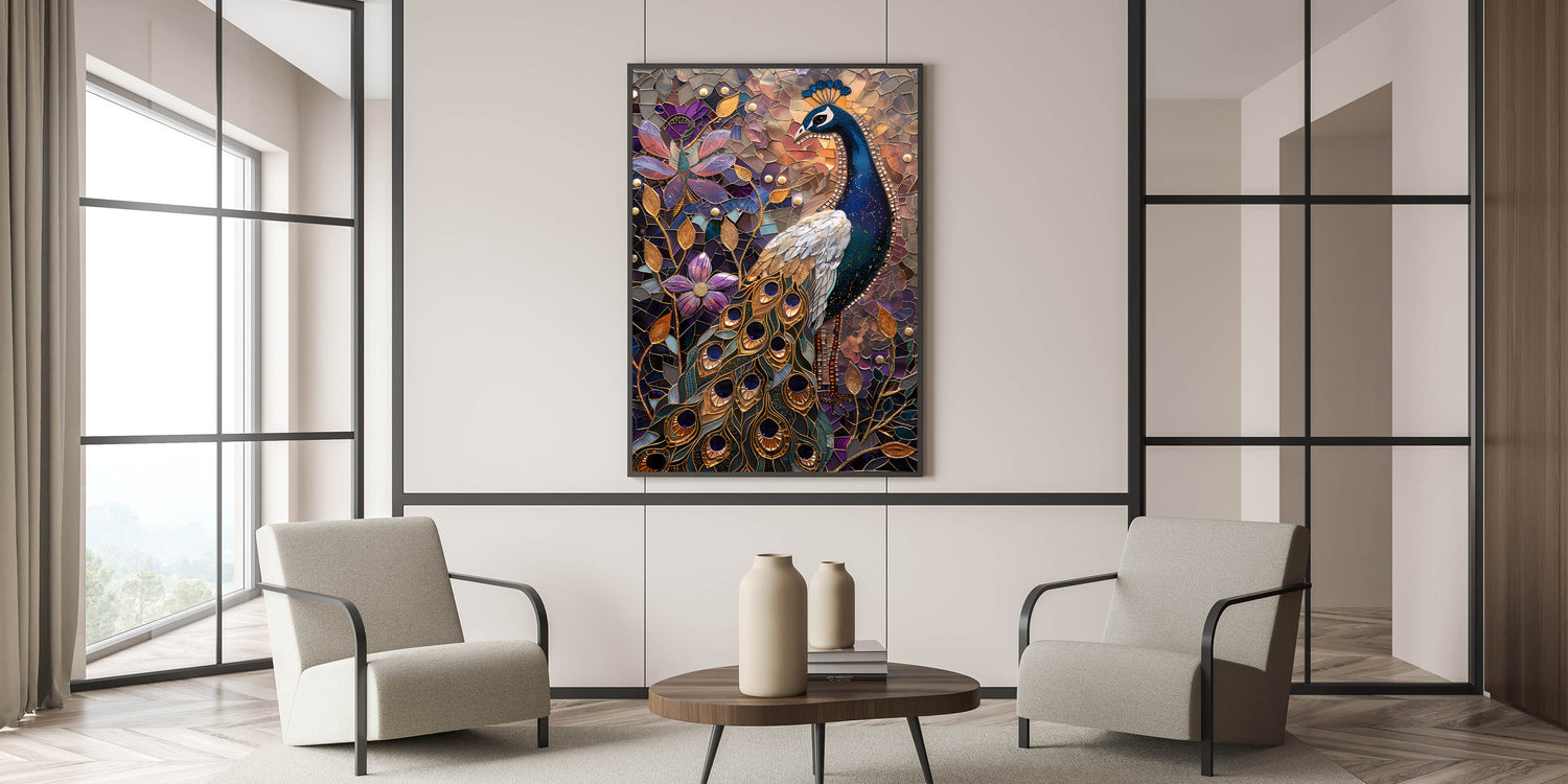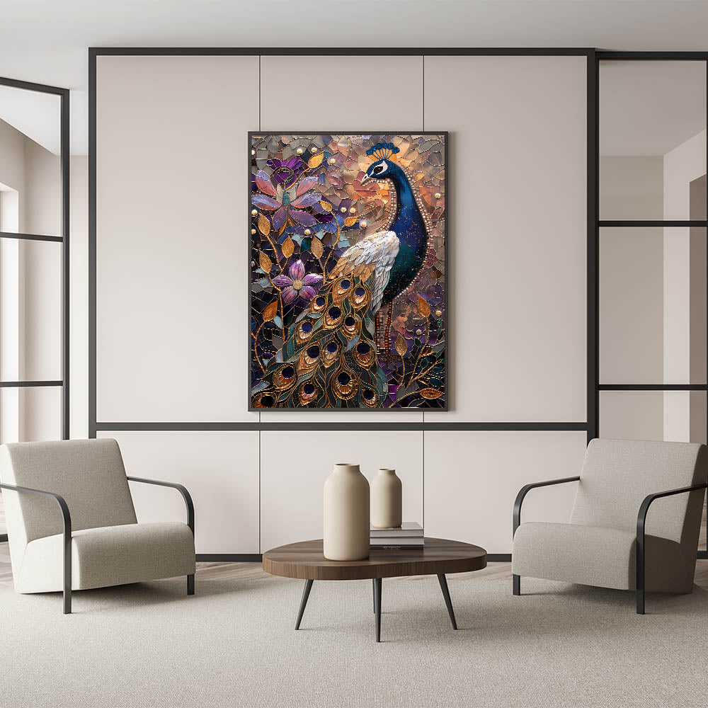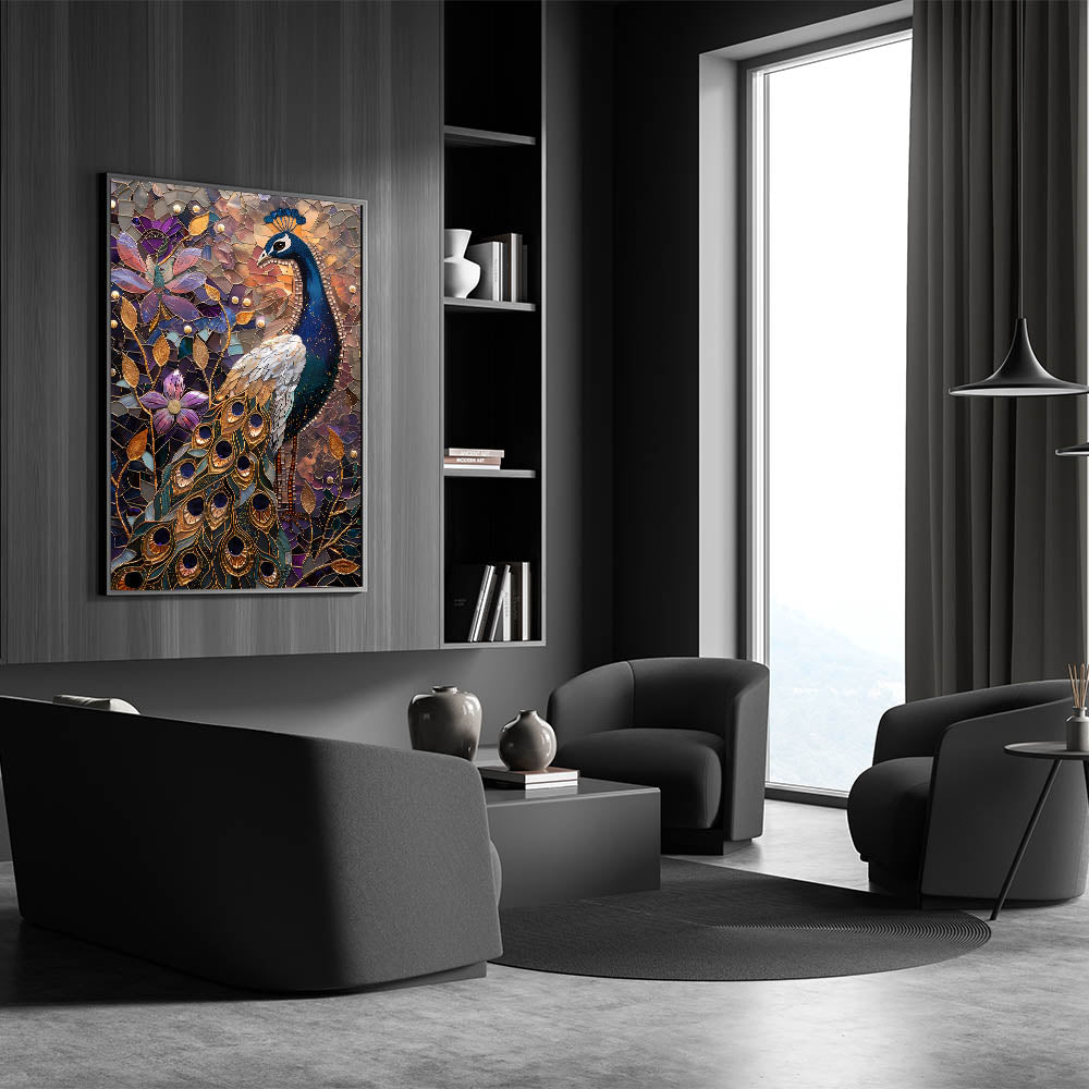 Luxurious Peacock Mosaic - Wildlife Art Prints for Elegant Home Decor