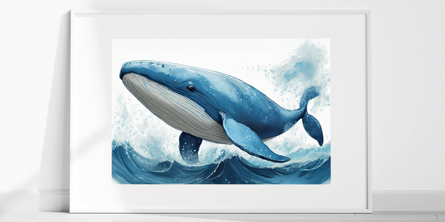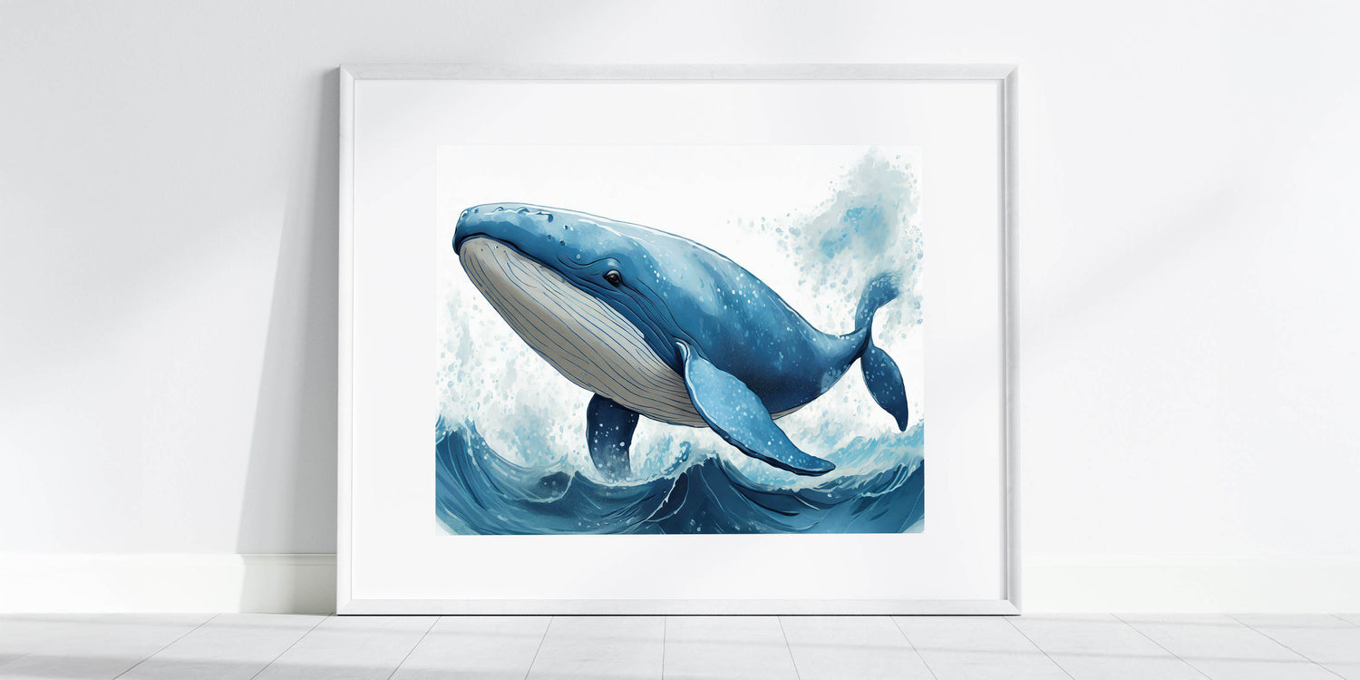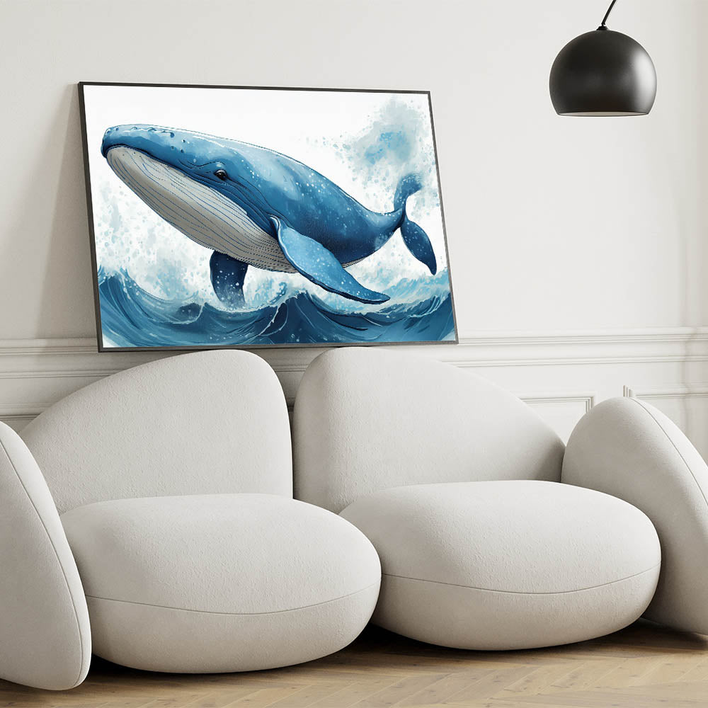 Introduce a captivating piece of marine life art with this stunning whale wall art. Perfect for ocean enthusiasts and those looking to bring a touch of the sea into their home, this artwork showcases a majestic whale gracefully swimming through vibrant ocean waves. The detailed rendering and calming color palette make it an ideal centerpiece for any room.