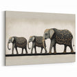 Add a touch of sophistication to your living space with this minimalist wildlife painting wall art. Featuring a graceful elephant family with delicate golden accents on a clean and neutral background, this artwork perfectly combines modern design and nature's elegance. It is an ideal choice for creating a serene and stylish focal point in any room.