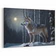 Moonlit Wolf in Snowy Forest Art - Majestic Canvas, Framed, and Acrylic Prints