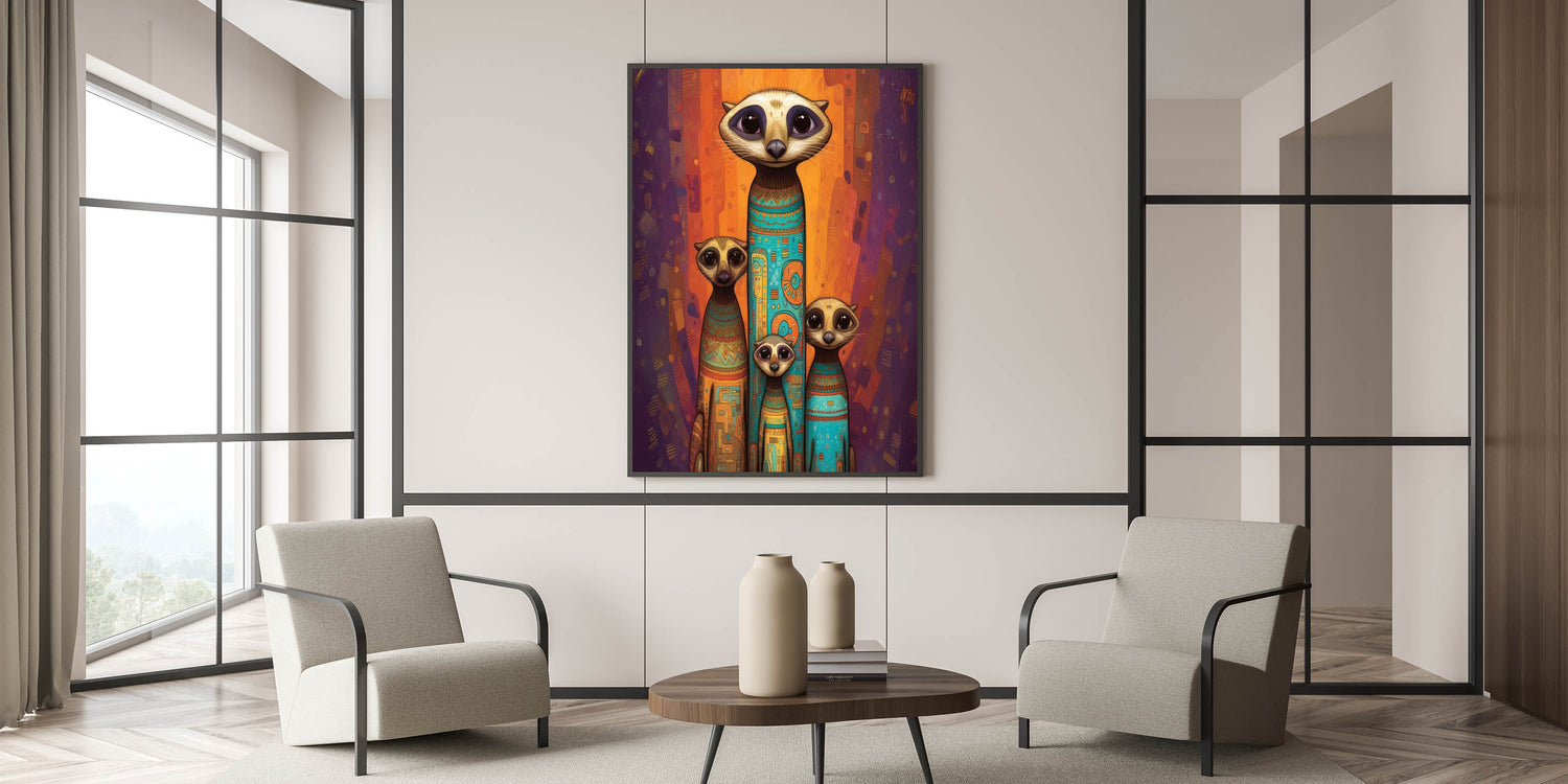 Vibrant Meerkat Family - Wildlife Painting Wall Art for Home Decor