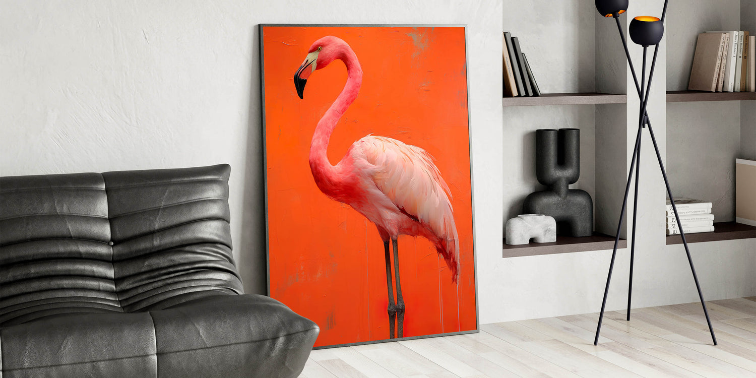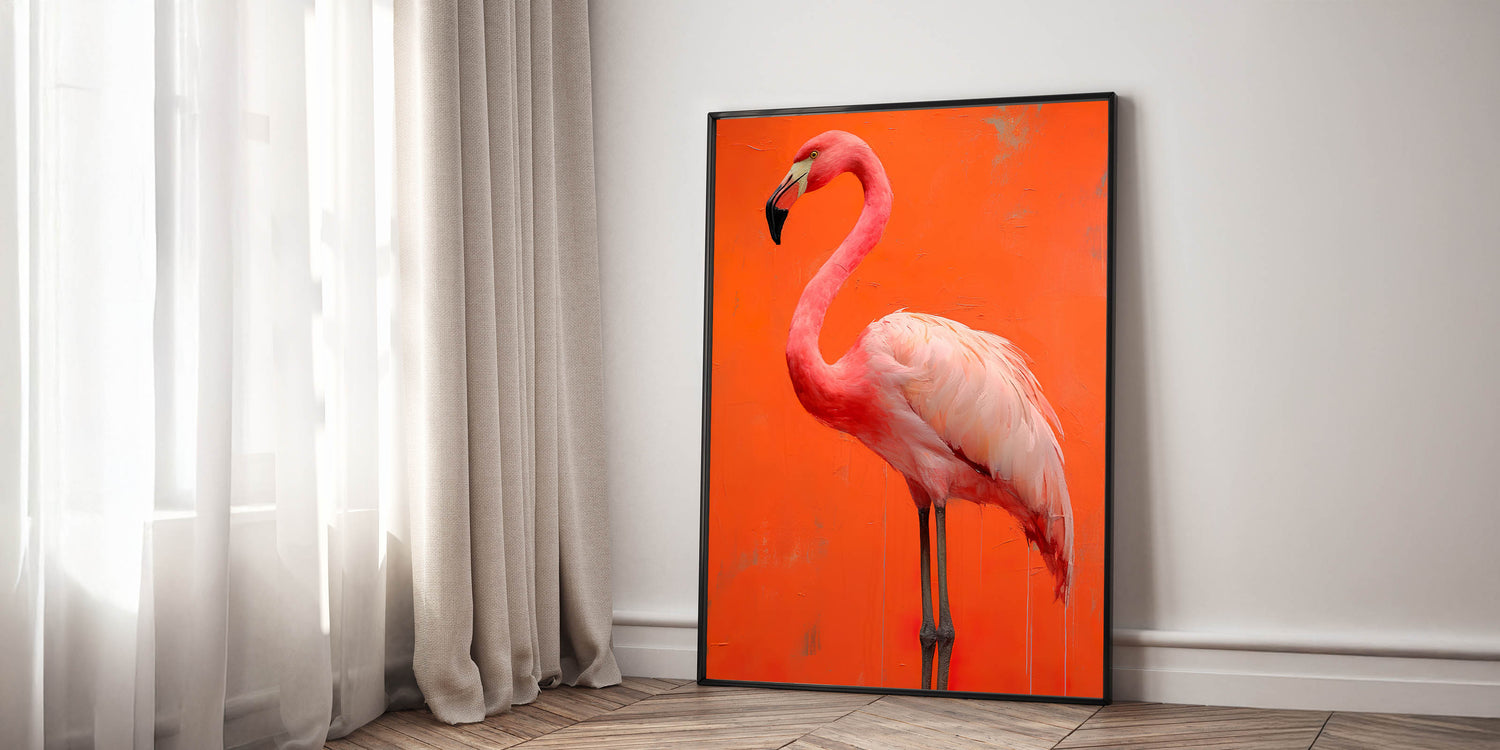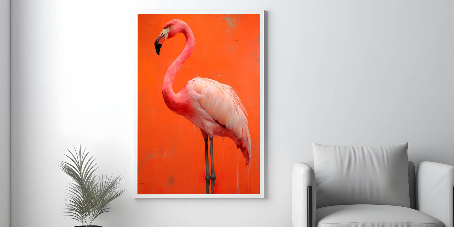 Make a bold statement in your home with this eye-catching Flamingo wall art. Featuring a vibrant flamingo set against a striking orange background, this artwork combines the natural elegance of the bird with a modern, artistic flair. The intense contrast between the pink and orange tones creates a dynamic visual impact, making this piece perfect for those who appreciate bold and contemporary design.