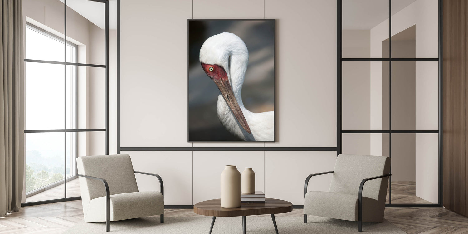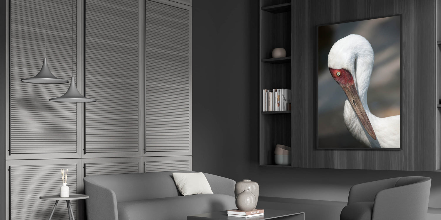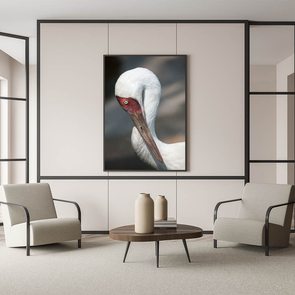 • High-Definition Print: Captures every intricate detail of the crane, from the textures of its feathers to the vibrant colors of its beak.