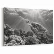 Elevate your space with this Monochrome Turtle Wall Art, a striking piece that combines the elegance of black and white photography with the serenity of marine life. This stunning canvas print captures a sea turtle gracefully swimming through an underwater world, bathed in soft rays of sunlight. Perfect for modern and minimalist decor, this artwork adds a sophisticated and tranquil touch to any room.