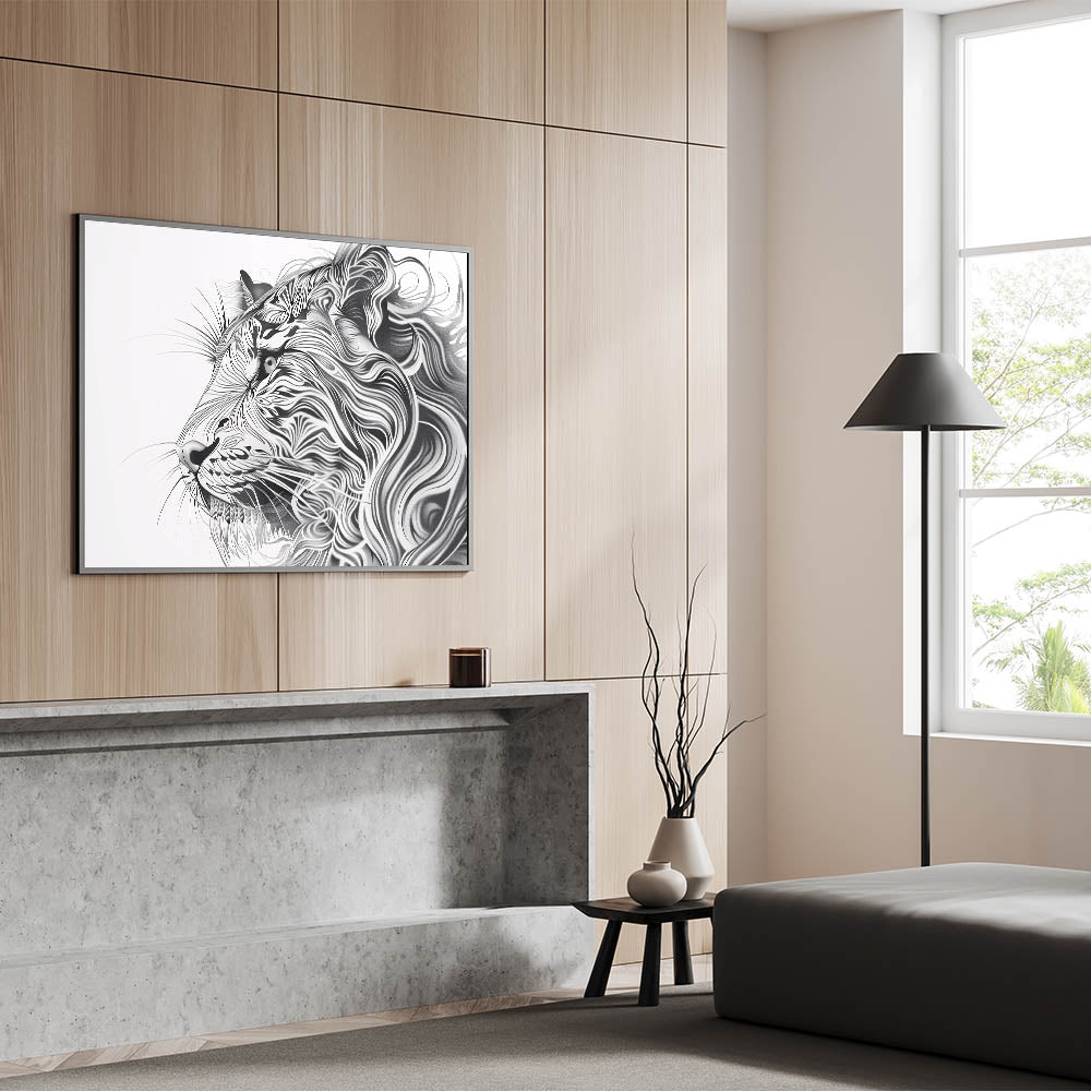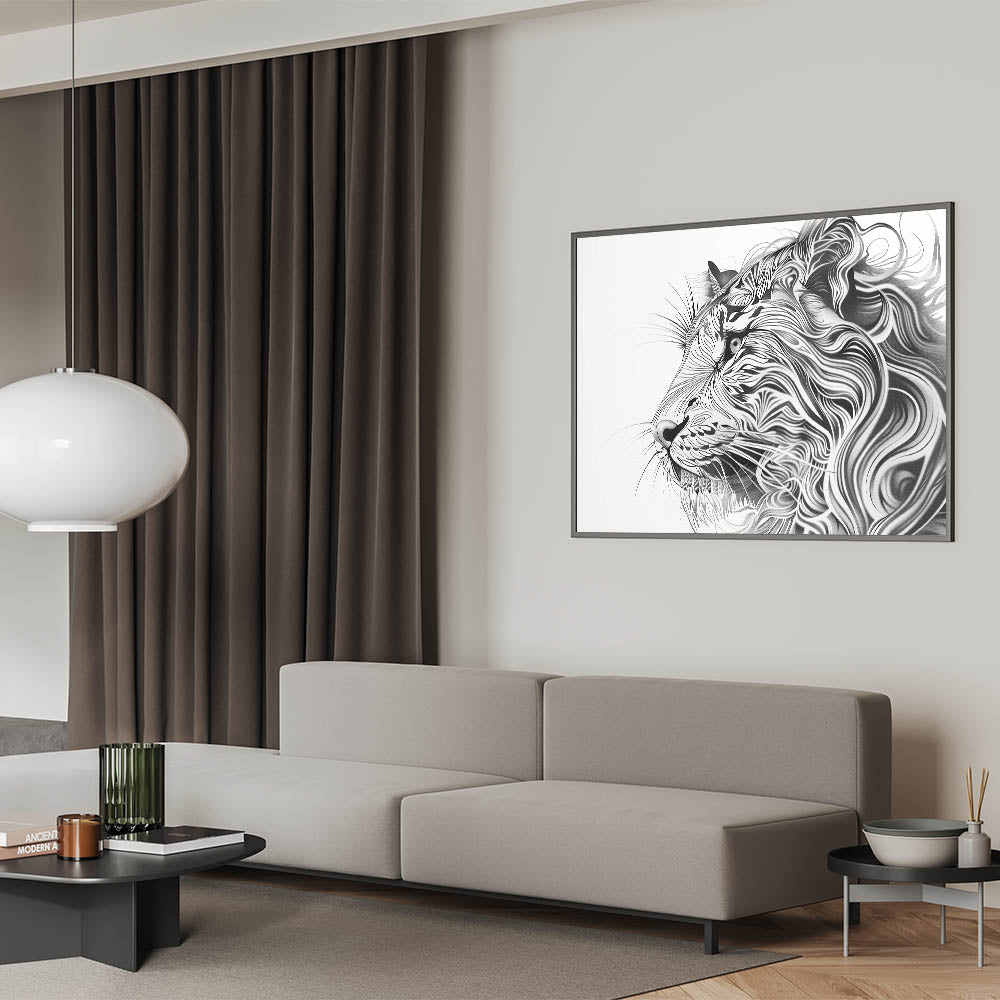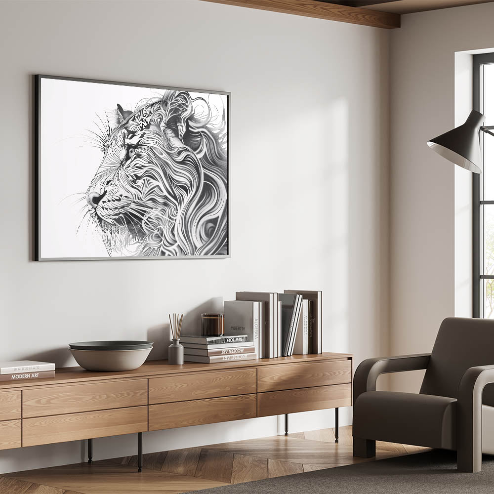 This abstract lion illustration is ideal for contemporary spaces, whether you're decorating your living room, office, or animal-themed area. Add a touch of wild elegance with this powerful piece of art.