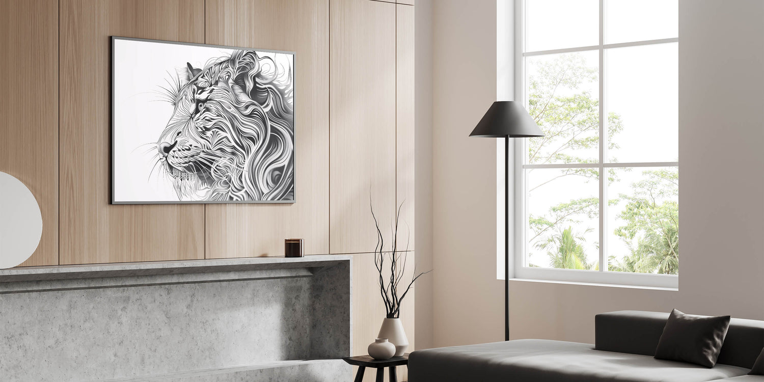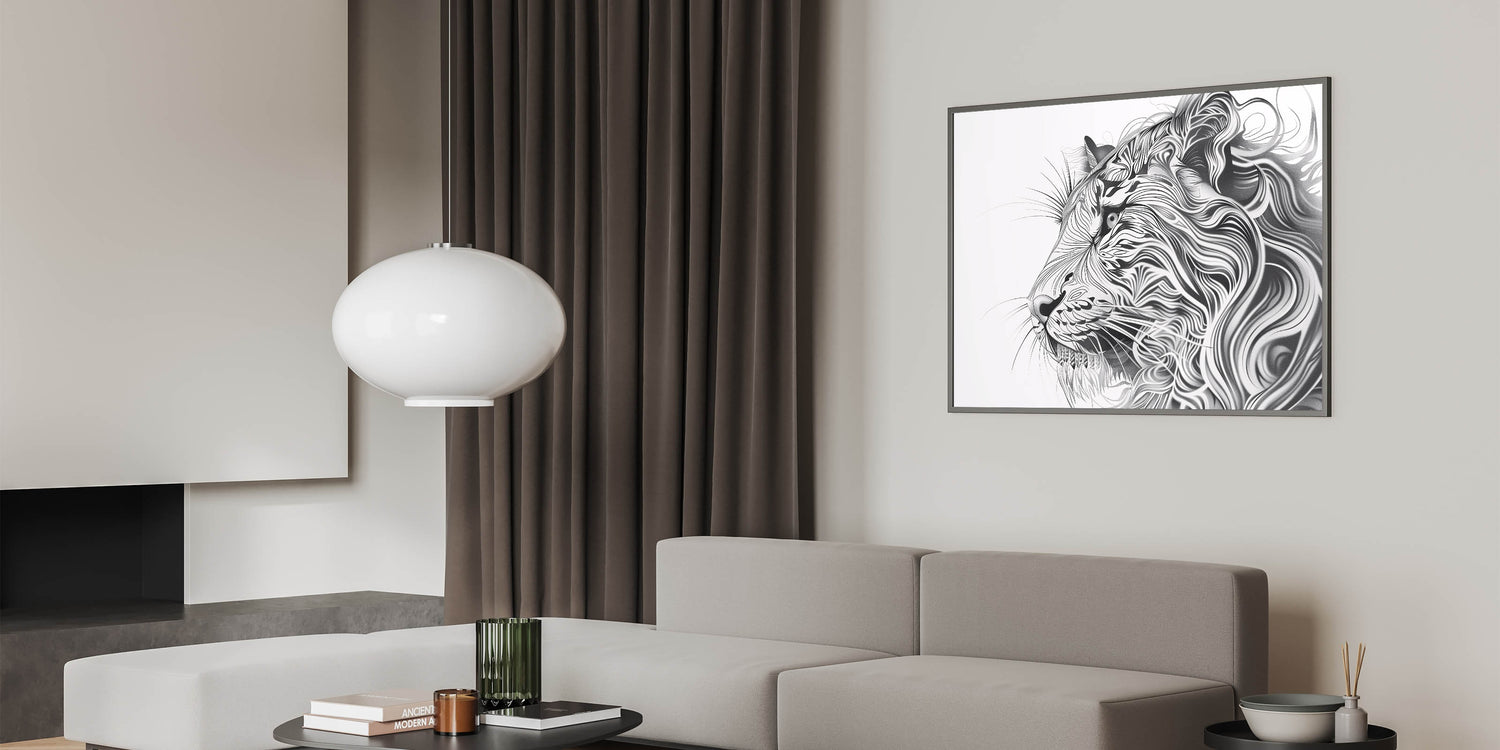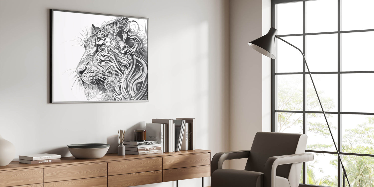 This abstract lion illustration is ideal for contemporary spaces, whether you're decorating your living room, office, or animal-themed area. Add a touch of wild elegance with this powerful piece of art.