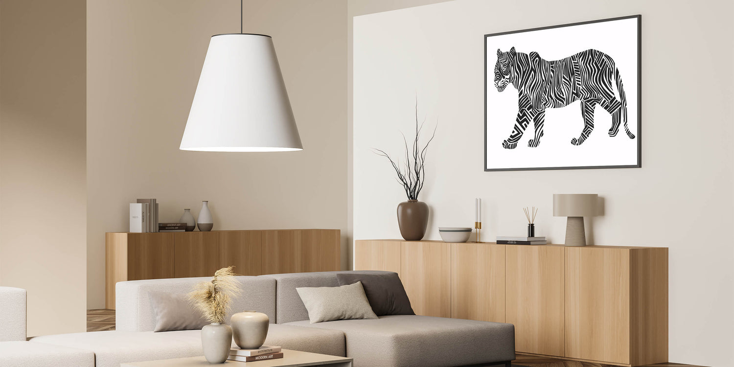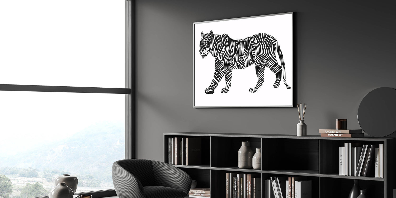 This abstract tiger illustration is ideal for any room, whether you're decorating a modern living room, office, or animal-themed space. Add a dramatic touch of artistry and bold design with this striking piece of art.