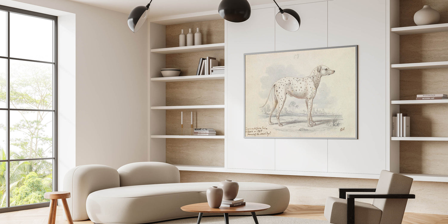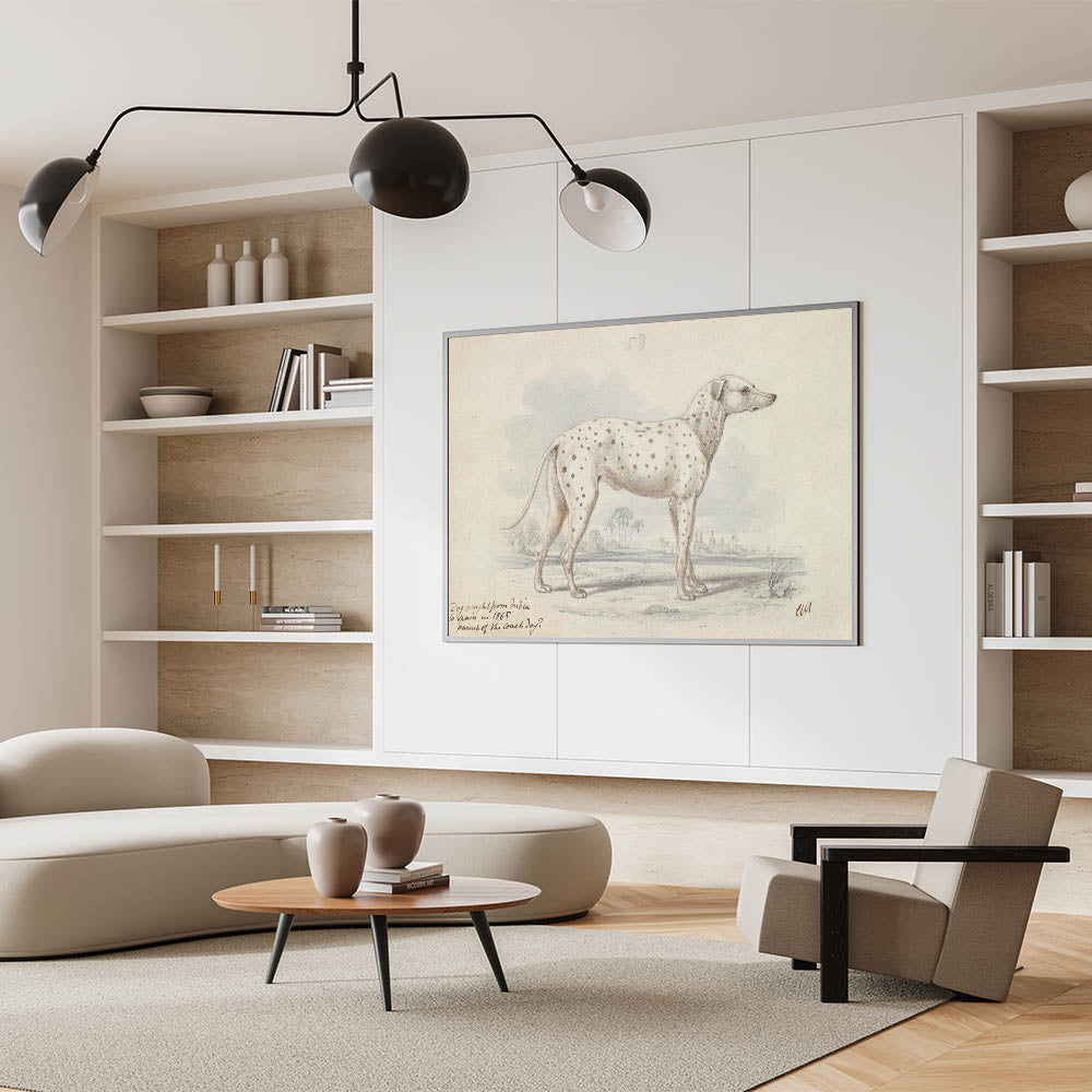 Elevate your home with this exquisite vintage animal art featuring a detailed Dalmatian dog illustration. The timeless design captures the elegance of this iconic breed, with its classic black and white spots and sleek form. This unique animal art piece brings a sophisticated and nostalgic touch to any space, perfect for animal lovers and those seeking retro animal illustrations.