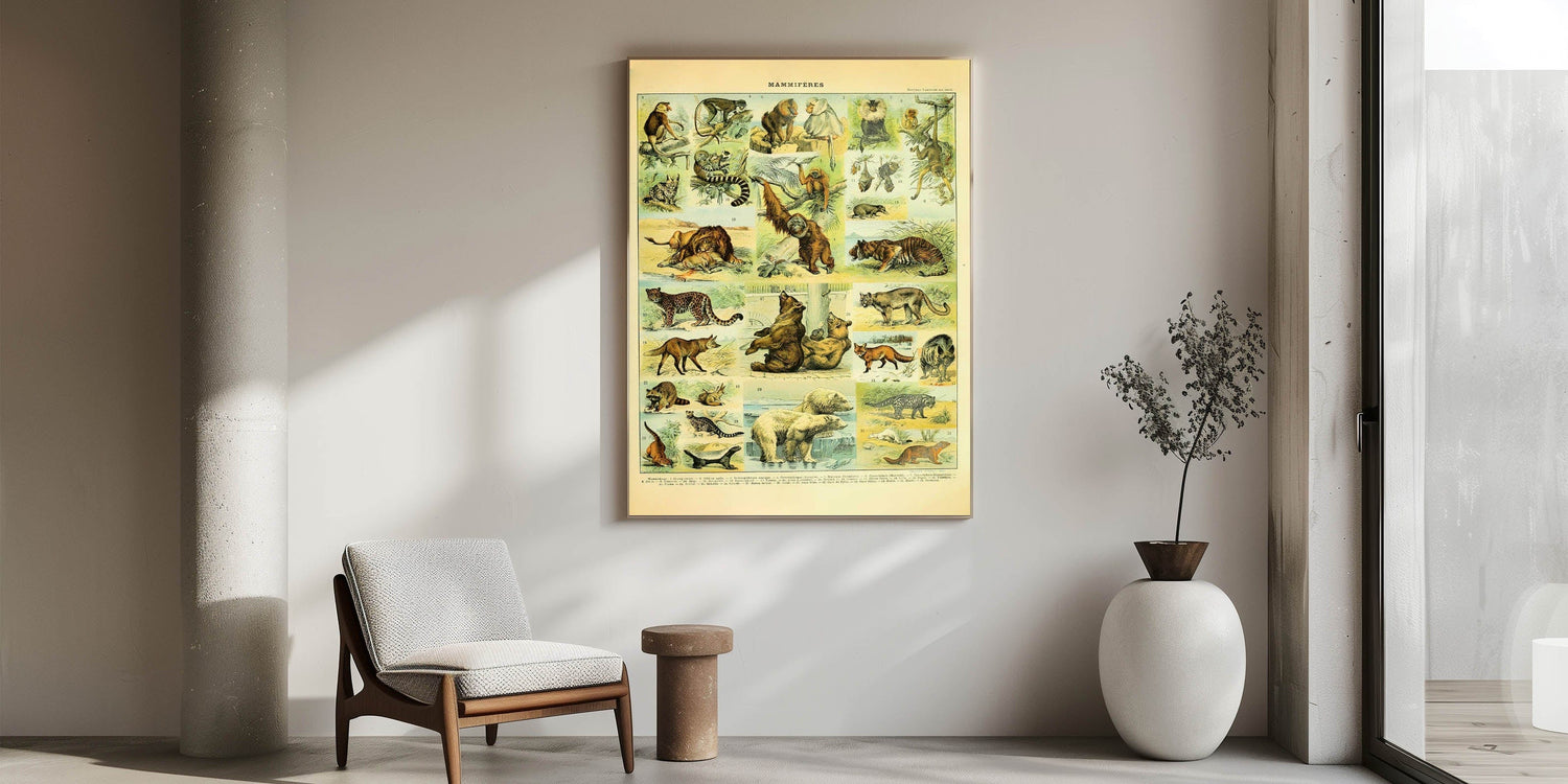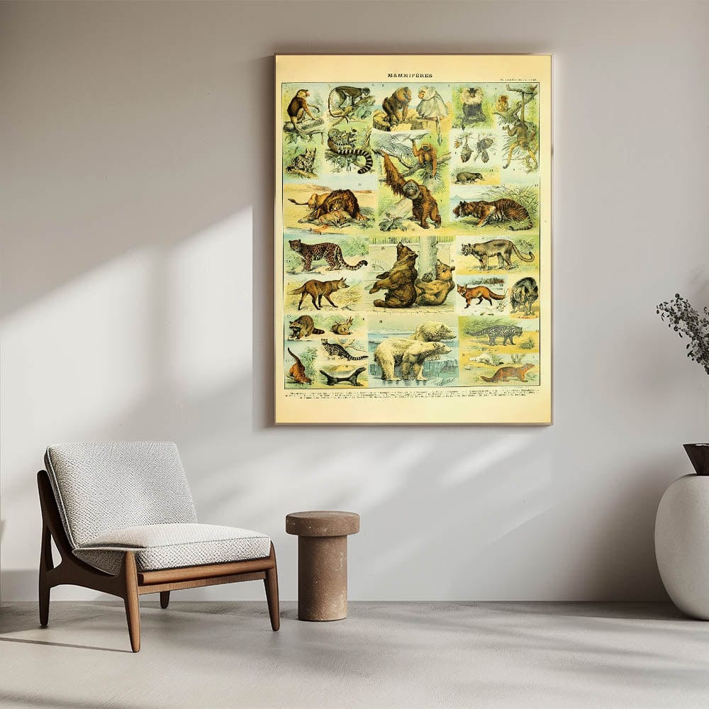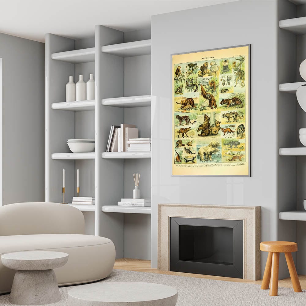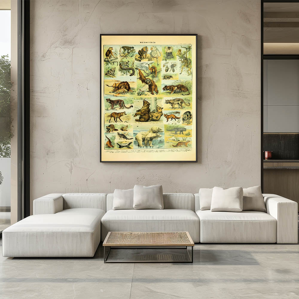 Step into the wild with this stunning vintage animal art print, showcasing an intricately detailed illustration of big cats, bears, primates, and more. Featuring majestic lions, tigers, leopards, and orangutans, this handcrafted animal illustration captures the raw beauty of nature in a timeless vintage art style. Whether you’re a wildlife lover, collector, or zoology enthusiast, this high-quality art print adds a touch of the untamed wilderness to any space.