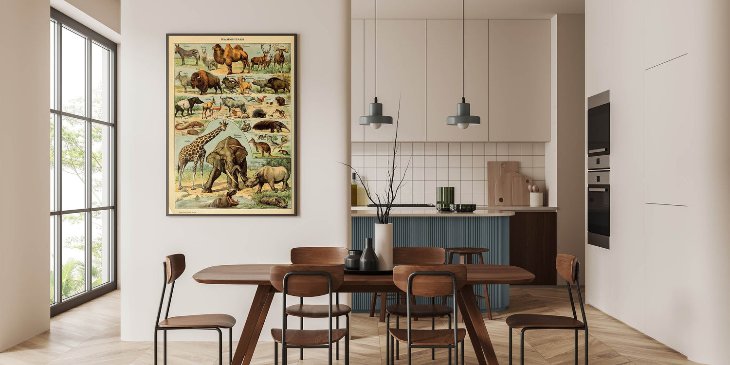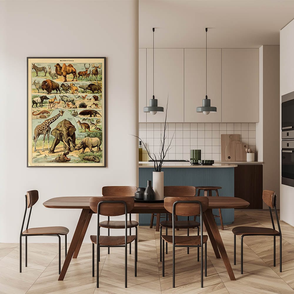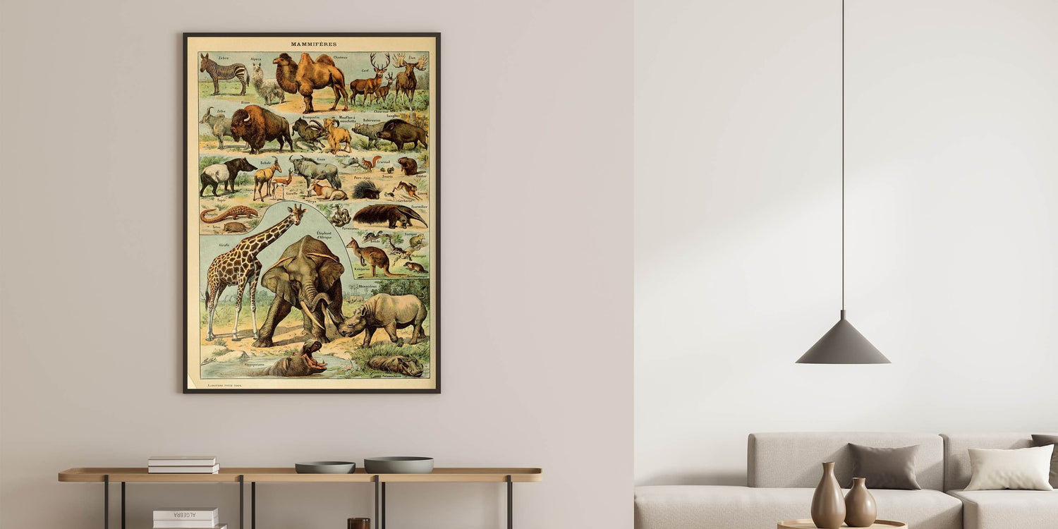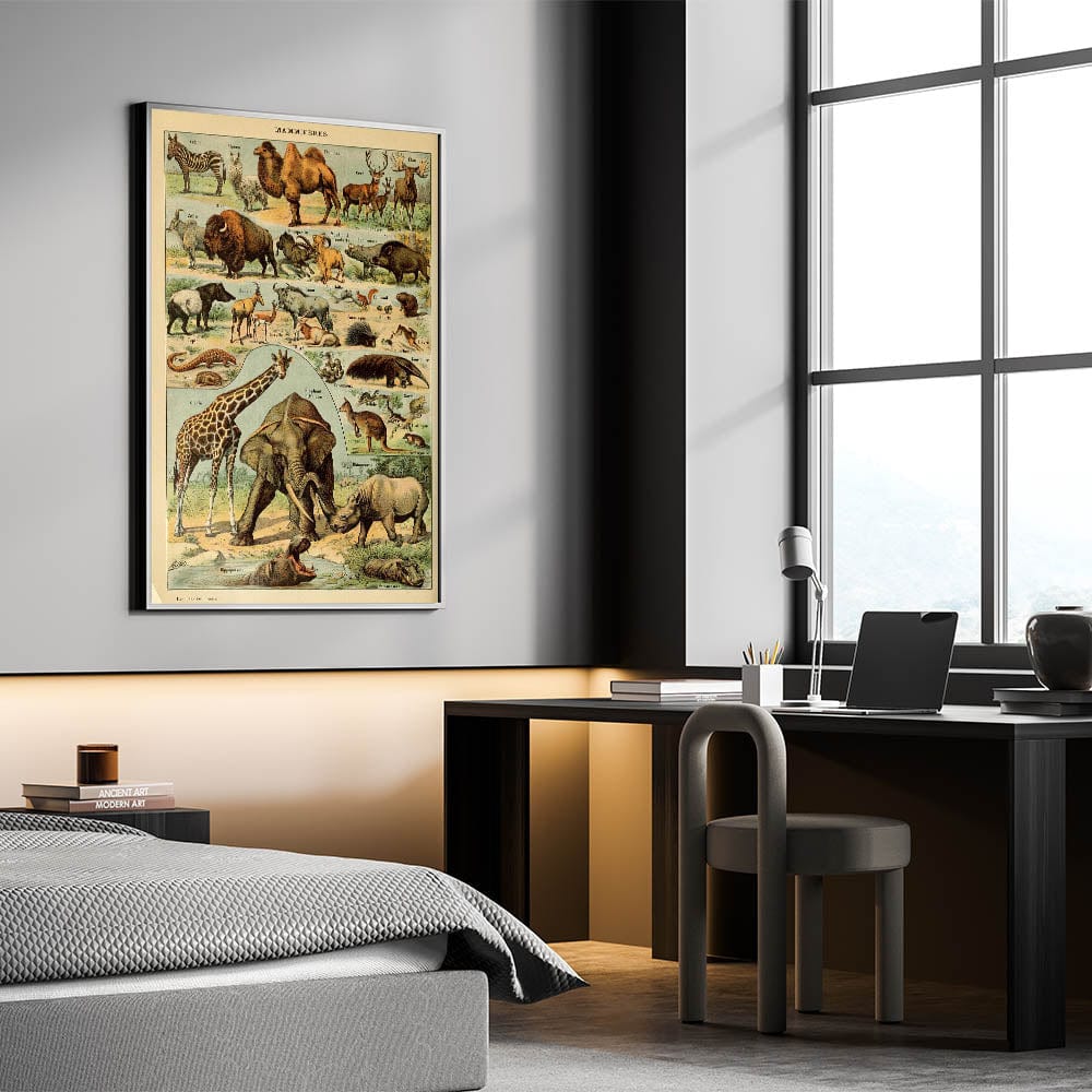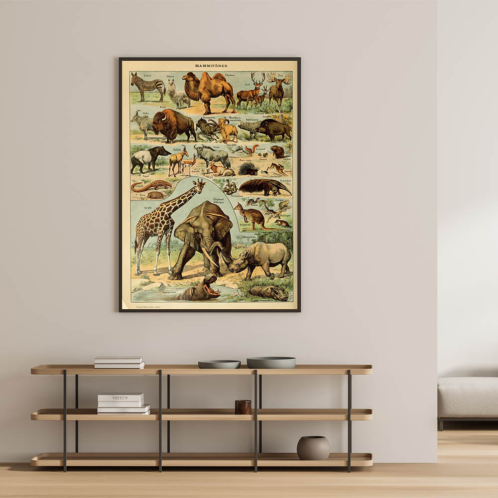 Discover the beauty of wildlife with this stunning vintage animal art print, featuring an intricate scientific illustration of mammals from around the world. From majestic giraffes and elephants to powerful bison, zebras, and antelopes, this handcrafted animal illustration captures the diversity of nature in stunning detail. Whether you're a wildlife enthusiast, zoologist, or collector, this high-quality art print makes a timeless addition to any space.
