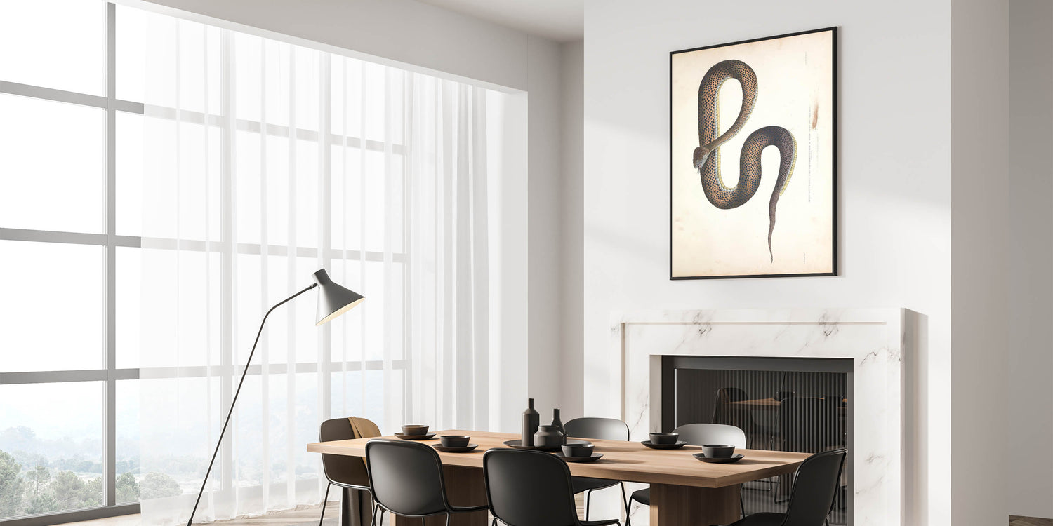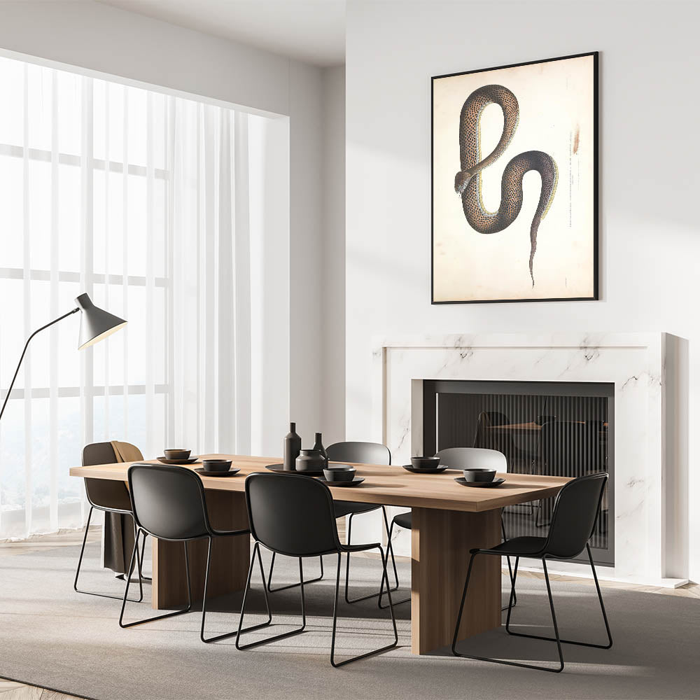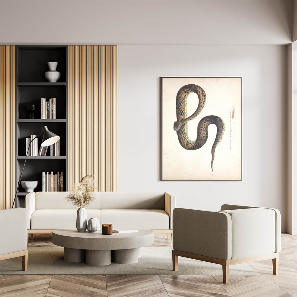 Bring a touch of history and elegance to your space with this Vintage Animal Art featuring a beautifully detailed Retro Snake Illustration. This Animal Wall Decor captures the intricate artistry of classic natural history illustrations, making it a timeless statement piece for any interior. Whether you're a wildlife enthusiast, a fan of Illustration Art Prints, or looking for Animal Prints for Home, this artwork is a perfect choice.