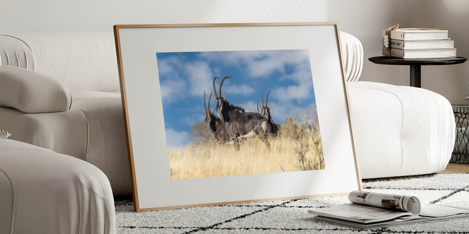 - High-definition print that highlights the vivid colors and fine details of the antelopes and their environment.