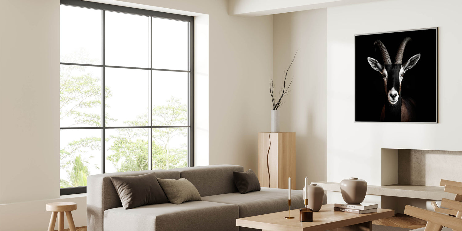 - High-definition print ensures sharp detail and vivid contrast, showcasing the antelope's powerful presence.