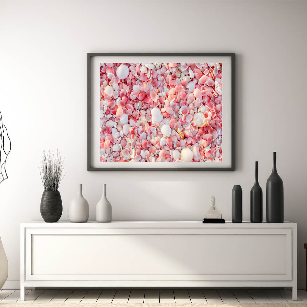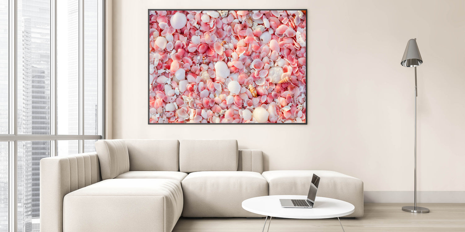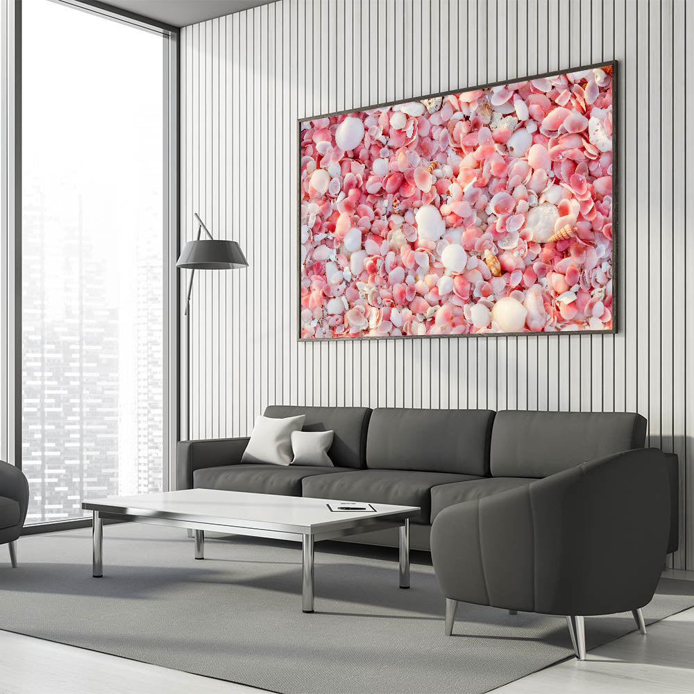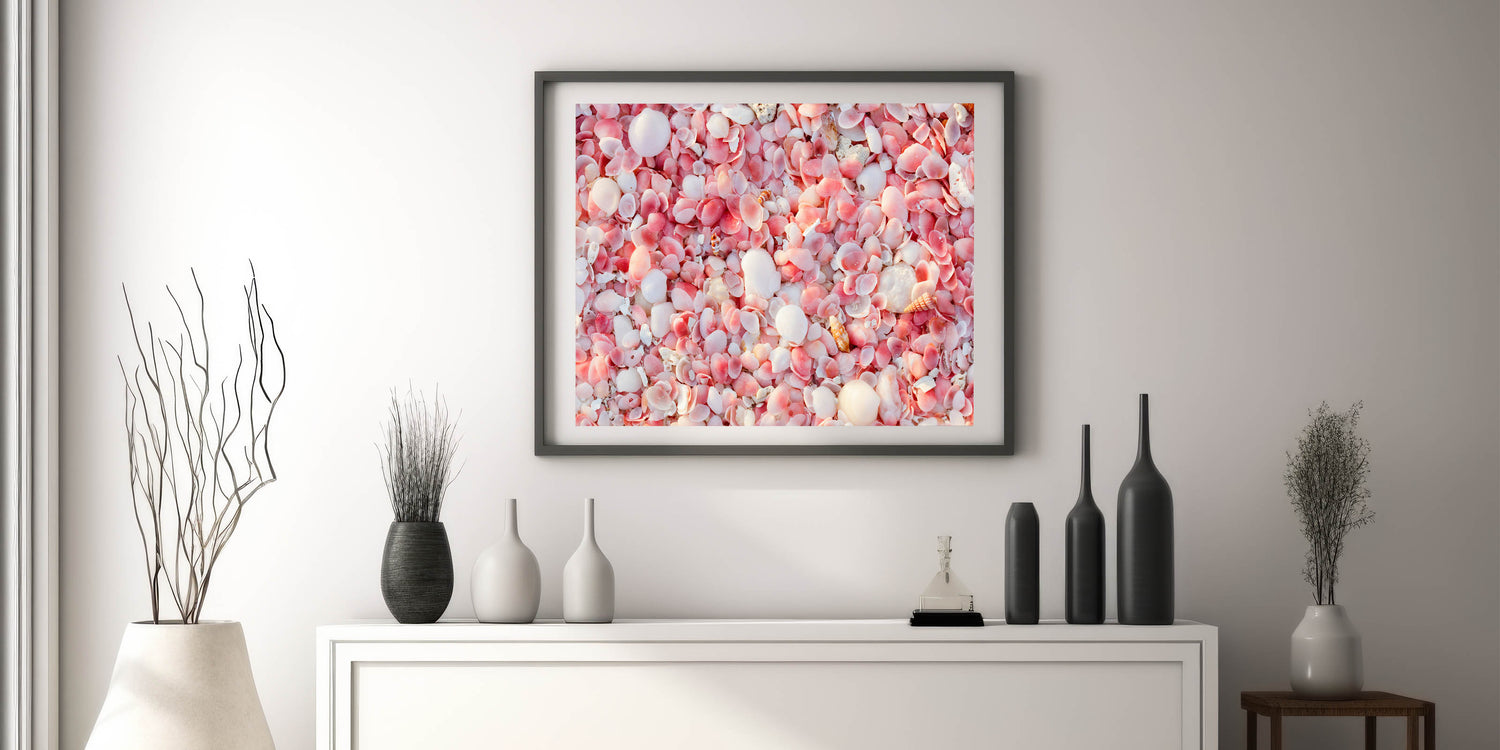 Immerse yourself in the beauty of Antigua's pristine beaches with this exquisite artwork featuring a stunning collection of pink and white seashells. Part of our Antigua Wall Art Collection, this piece captures the natural elegance of the Caribbean, offering a serene coastal vibe to any space.