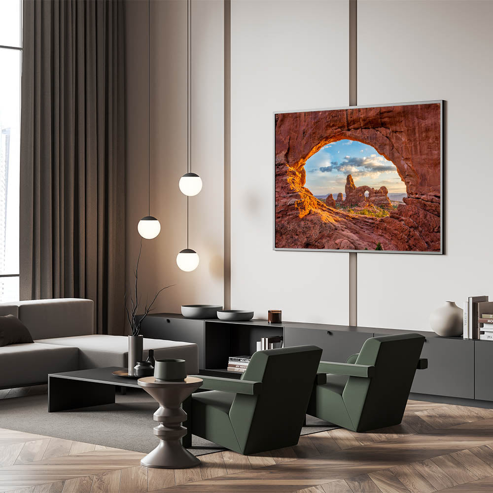 This stunning art piece is ideal for anyone looking to add a touch of nature’s beauty to their décor. Bring the sweeping vistas and majestic rock formations of Arches National Park into your home with this eye-catching artwork.