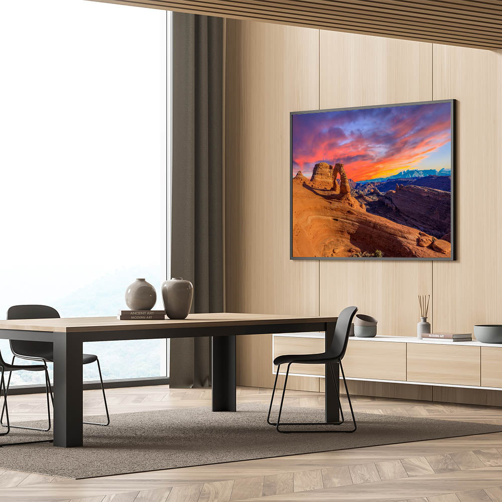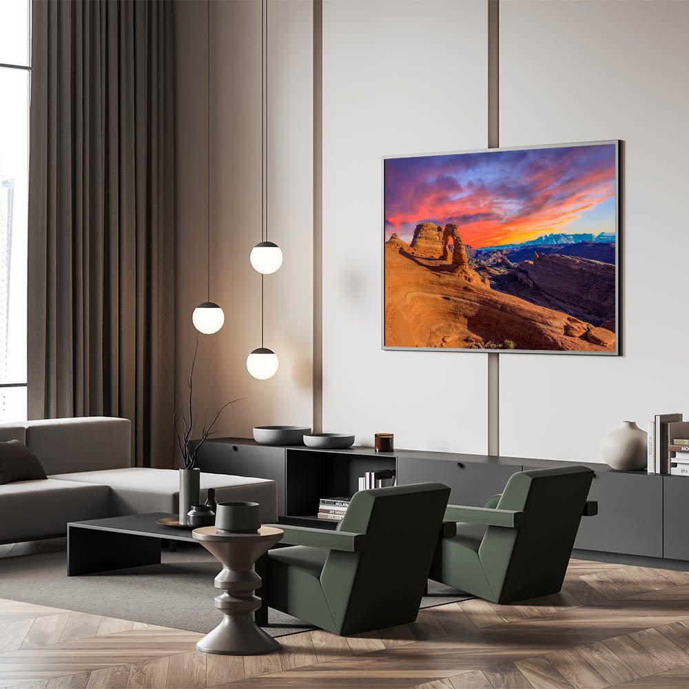 This vibrant depiction of Utah’s natural wonder is perfect for lovers of nature photography and those who want to bring the majesty of Delicate Arch into their space. The sunset colors and sweeping vistas create a captivating focal point for any room.