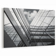 Introducing our Minimalist Architectural Wall Art, featuring a breathtaking depiction of modern architecture against a clear sky, with a plane captured in mid-flight, adding a unique dynamic to the composition. This artwork is a stunning example of minimalist design, emphasizing clean lines and reflective surfaces that evoke a sense of calm and openness.