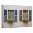 Elevate your decor with this delightful Charming Double Window with Flowers Wall Art. This captivating piece features two vintage-style windows adorned with vibrant red flowers, creating a picturesque and welcoming scene. The contrast between the weathered shutters and the bright, blooming flowers adds depth and charm, making this artwork a perfect addition to any room that needs a touch of warmth and elegance.