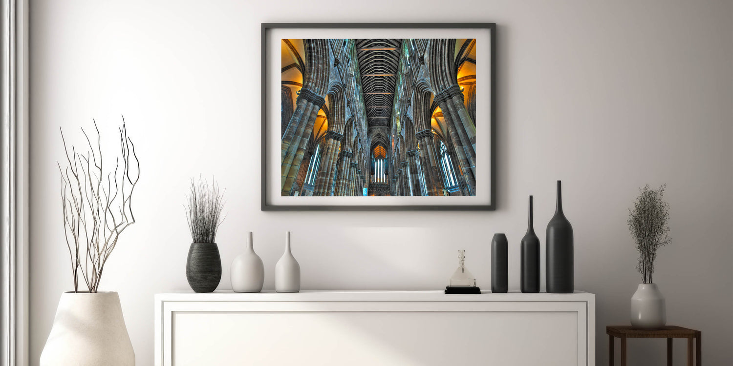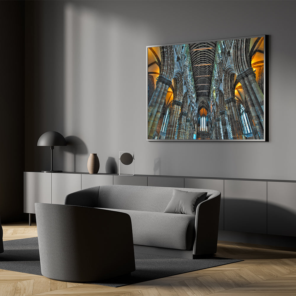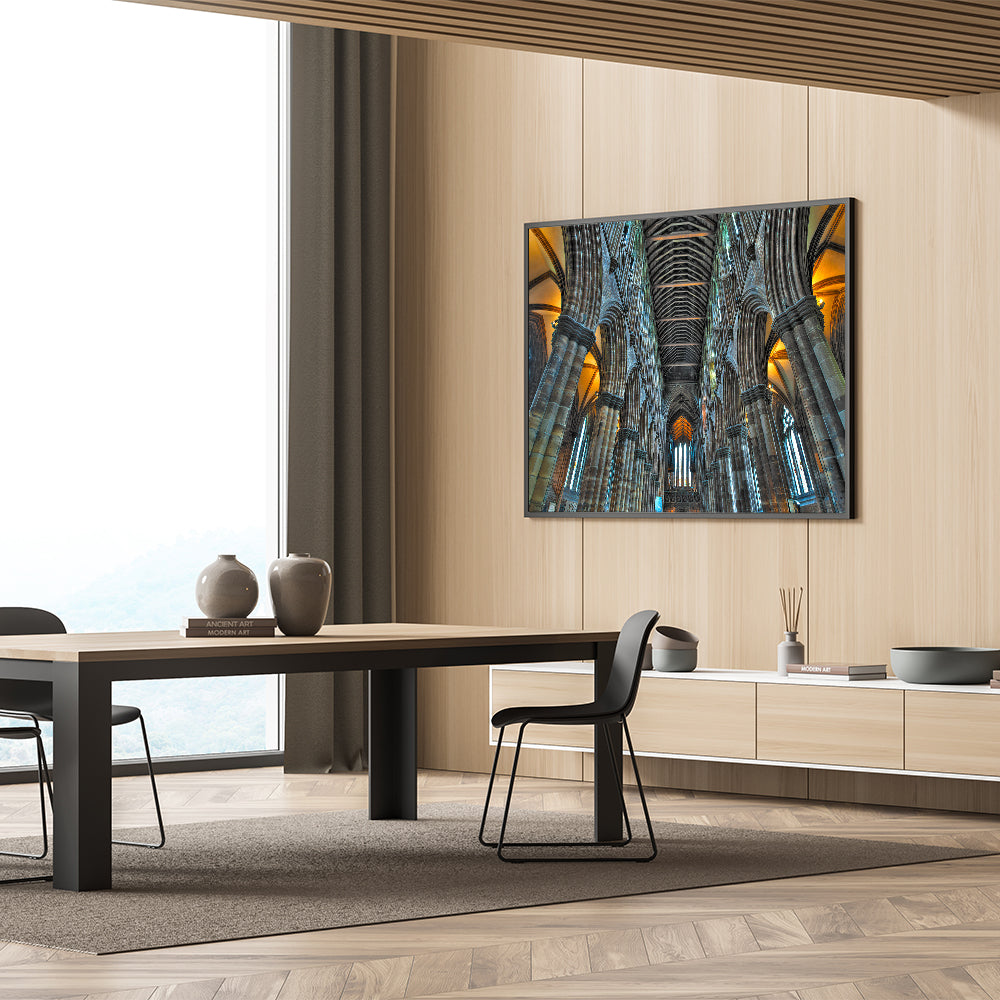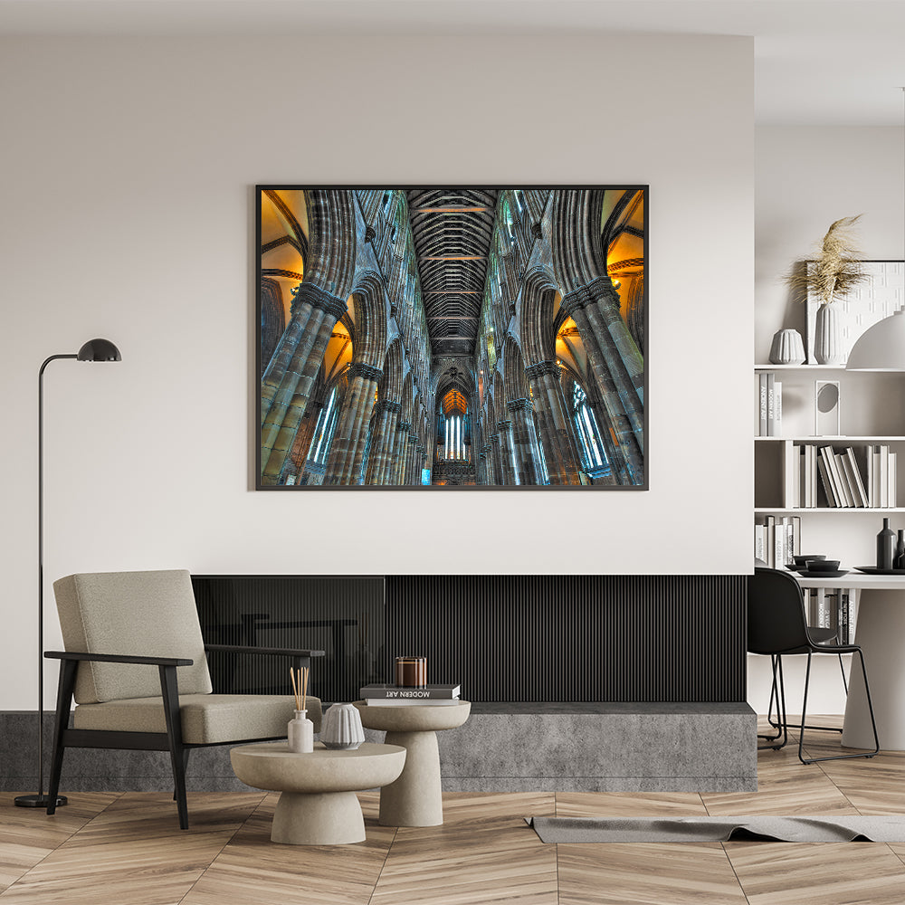 This artwork captures the timeless beauty and majesty of Gothic architecture, making it an ideal focal point for living rooms, offices, or prayer spaces. Its detailed depiction of the cathedral interior invites contemplation and admiration, adding a touch of serenity and sophistication to your home.